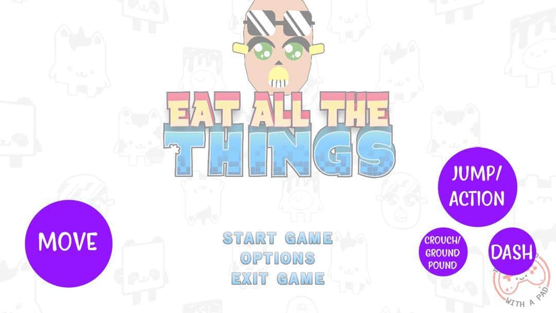Eat All The Things – приключенческий платформер на андроид, где вы будете управлять героем-пончиком. Перемещайтесь по разнообразным платформам и собирайте по пути бонусы и усиления, которые пригодиться вам для битвы с врагами. Управляйте главным героем и помогите ему пройти все испытания предложенные игрой и перемещайтесь по различным мирам, используя крылья. Решайте непростые головоломки и задачи и открывайте для себя новые этапы игры. Проходите все уровни за минимальный промежуток времени и получайте ценные награды. Игра порадует вас простым и понятным управлением, многочисленными испытаниями и разнообразными костюмами для героя.