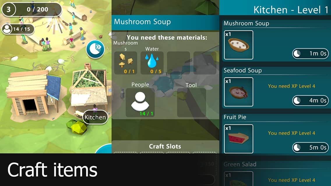 Мы попали на остров и будем на нем выживать ,это не так "Выживалка" которую мы привыкли видеть .. Начинаем игру , остров и вокруг природа что может быть красивее , есть система квестов у огня , жители которыми вы будете управлять будут просить тот или иной товар , возможности просить что то построить , душ , дом, туалет, еду или иные предметы.. Выбераем людей и шлем их на лесоповал и ждем опр количество времени "да" тут все занимает опр количество времени мне даже было пофиг ибо столько народу потому что даже девать некуда . Собирая ресурсы по карте , рыбу, червей, ракушки и тд превращаем в ресурсовую категорию для Крафта , ставим и наслаждаемся видом .... Мне безумно нравится данная игра , много квестов , задачь, построек , все так мило , надоела везде вечная деприсуха .. Зомби и тд обыденно уже надоела ... Тут все иначе рисовка мне нравится она угловатая . управление простое , крутим , вертим , выбераем и нажимаем .. Всем советую данную игру , спасибо за внимание играйте только в хорошие игры .