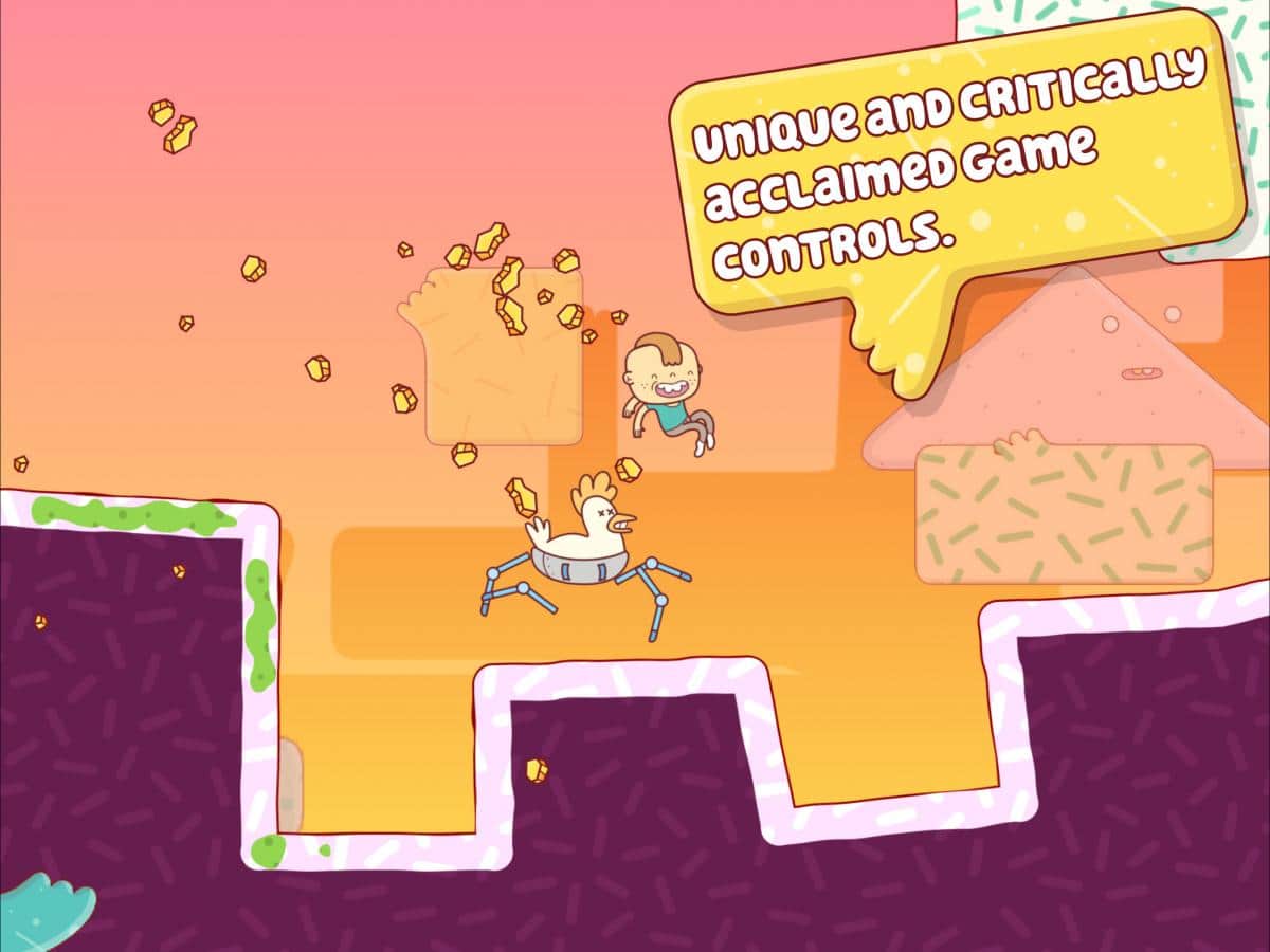 Eggggg — платформенный тошнотик - Это ну очень не обычный платформер. Данная игра расскажет нам историю одного паренька по имени Гилберт. У этого Гилберта ужасная аллергия на яйца и что бы их не есть он сбежал от своей тетушки, но неожиданно попал в мир где всем заправляют курицы-киборги. Теперь нашему герою предстоит победить их всех используя свою силу тошноты и заливая всех той массой что выходит из него.