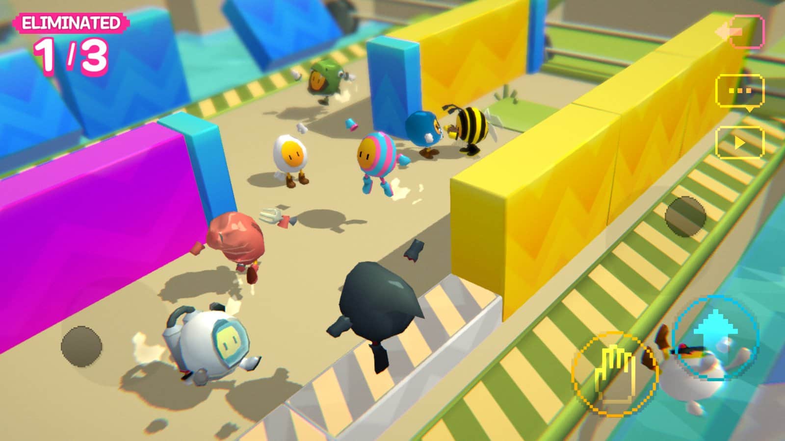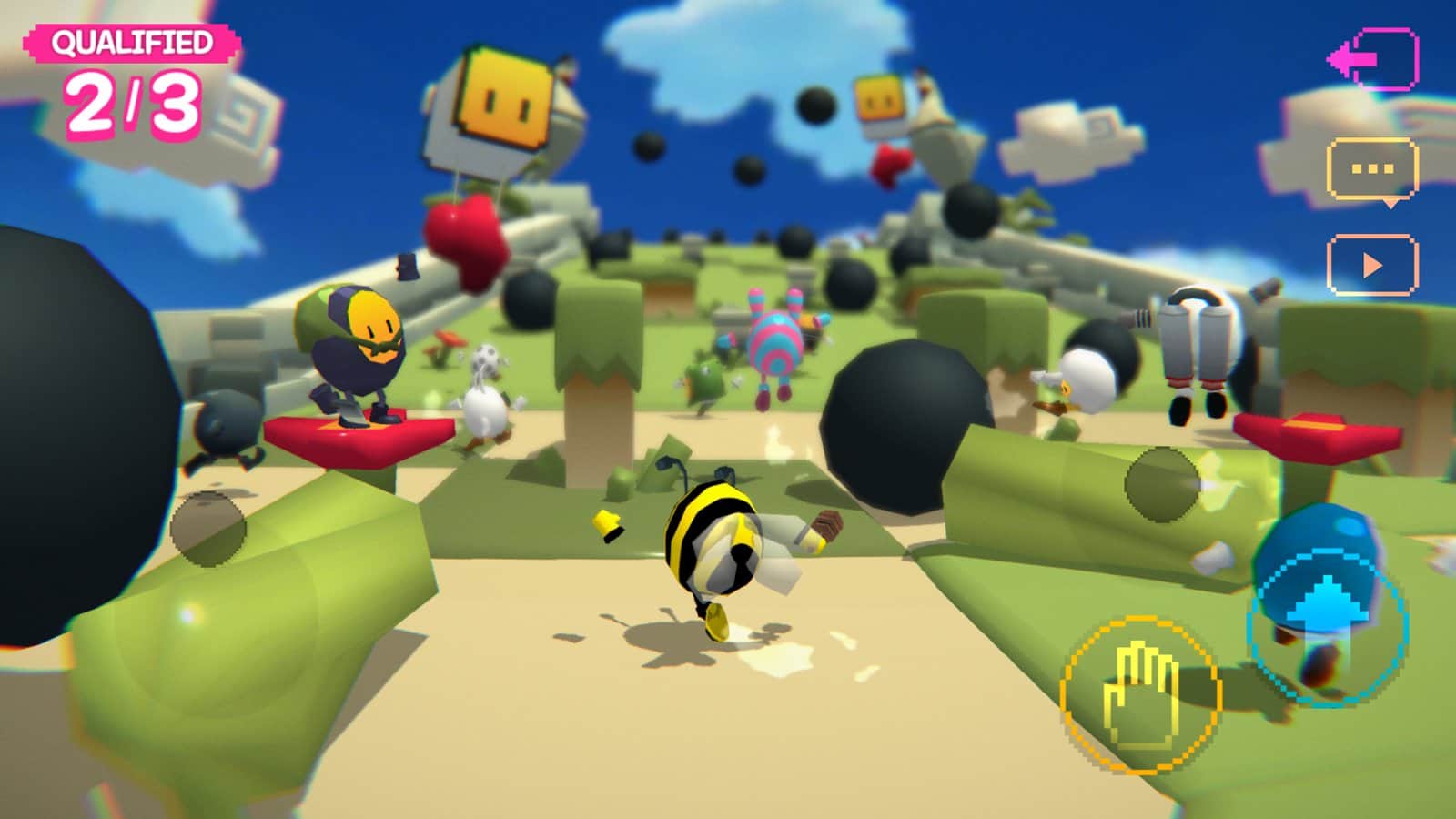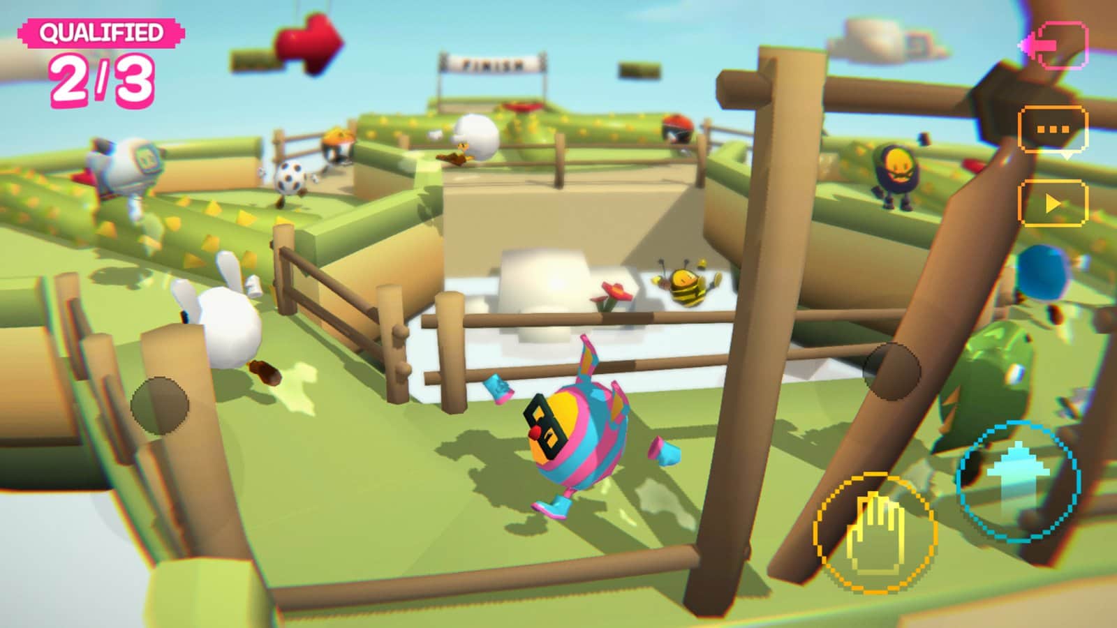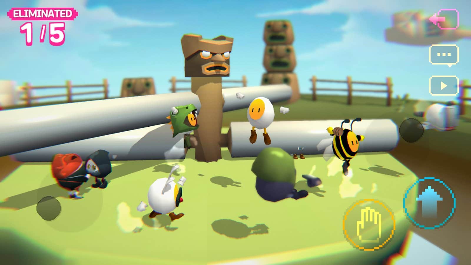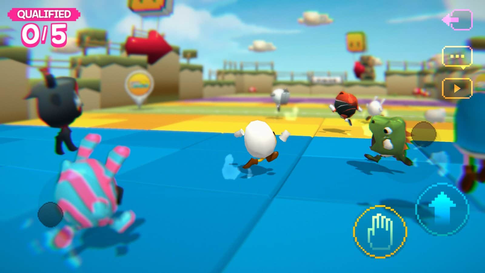 Участвуйте в скоростных соревнованиях против других игроков, бегая и прыгая на препятствиях по пути. Разные внешние виды персонажей: пчелы, зайцы, крокодилы, космонавты, яйца любой раскраски, мячи для бильярда и курочки. Проходите через передвигающиеся острова, залезая на вершины через паркуры, перепрыгивая ловушки и крутящиеся механизмы, дольше всех оставаясь на платформах и доходя до финала первым. Получайте очки и переходите на новые уровни, исследуйте многие доступные карты и наслаждайтесь, прокачивая ловкость!