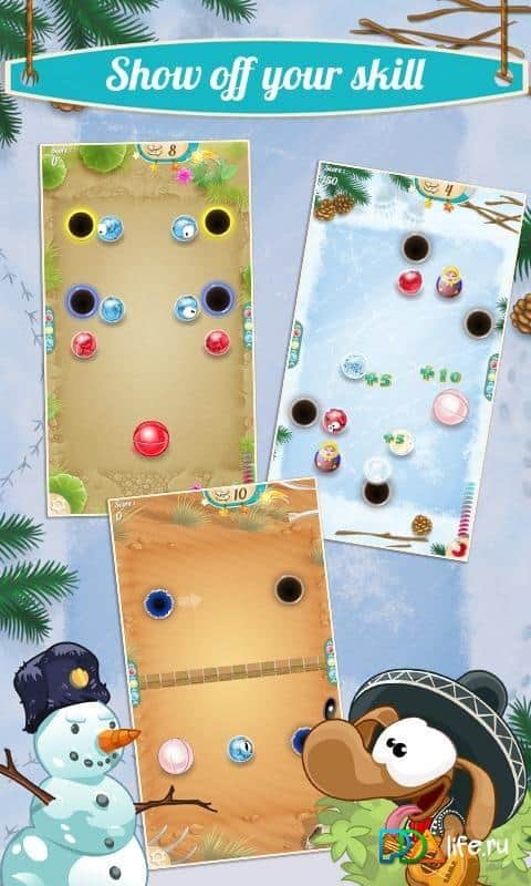 El Diego – веселая игра на андроид, где вам предстоит забивать шары в виде животных в лунки. В этой игре вы будете управлять фараоном который превращается в шарик и забивает шары в лунки, освобождая таким образом животных из плена. В этой игре вы попадете на поле, на котором в большом количестве расположены лунки, а также там имеется большое количество препятствий и преград. Приложите все свои умения и точно прицеливайтесь, перед тем как забить шарик в лунку. Путешествуйте по различным мирам, начиная от Мексики и заканчивая Россией и Европой и посетите, самые необычные места на планете. Для быстрого прохождения уровней используйте различные бонусы и усиления в виде магнита.