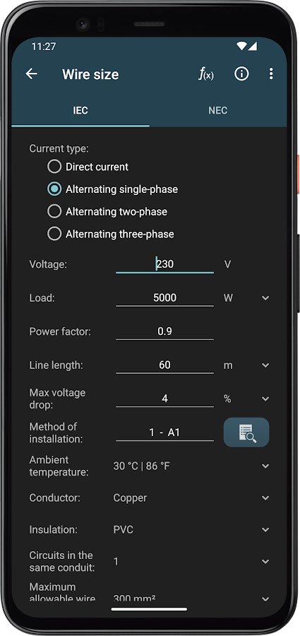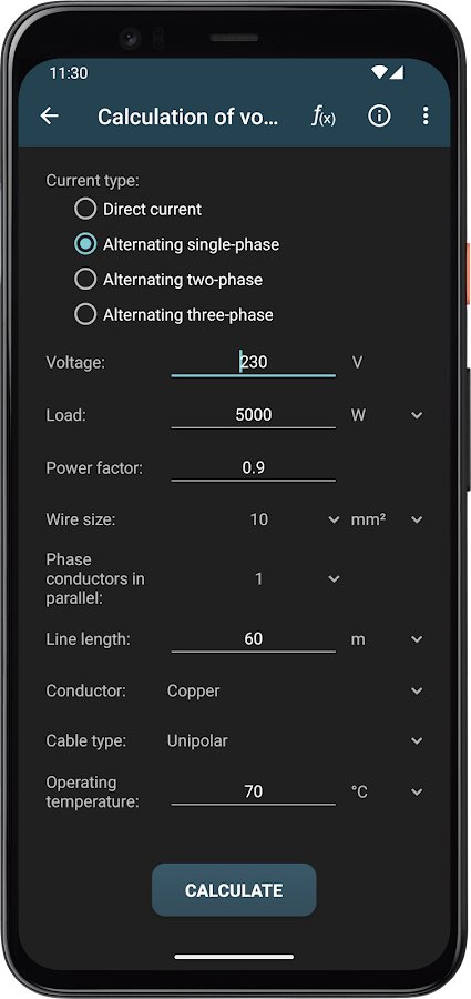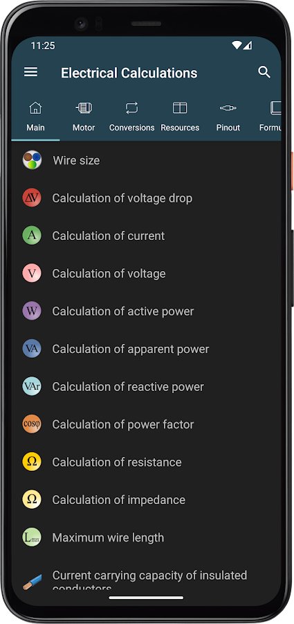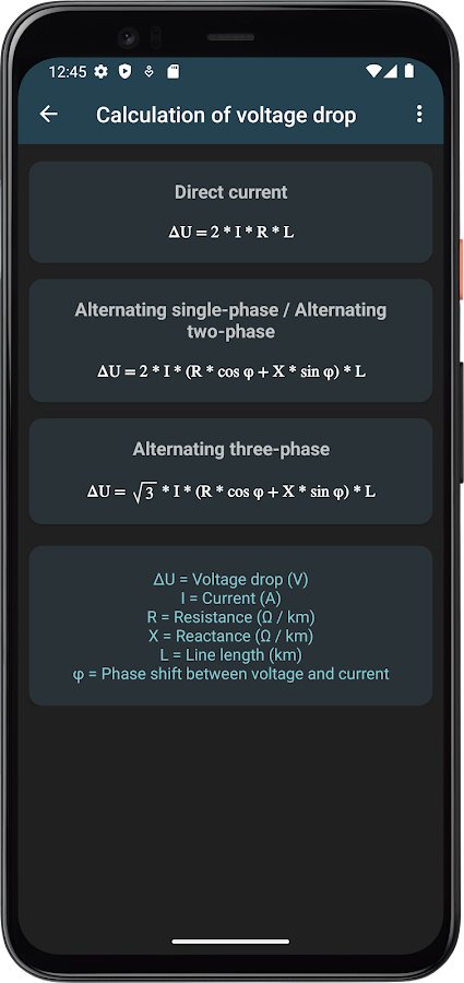 Приложение Calcoli Elettrici — это незаменимый помощник для электриков, инженеров и студентов, работающих с электрическими цепями. Оно предлагает широкий набор инструментов для расчёта токов, напряжений, сопротивлений и других параметров как в однофазных, так и в трёхфазных системах. Интерфейс интуитивно понятен, а точность вычислений позволяет использовать приложение как в учебных целях, так и на практике. Всё необходимое — в одном компактном инструменте!