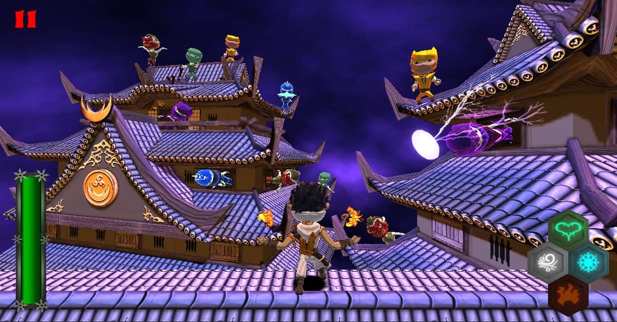 Elemental Ninja - Увлекательная андроид игра в стиле экшен. Вы будите играть маленьким, но очень шустрым ниндзя. Вам предстоит пройти четыре красивых мира, в которых около тридцати уровней. Вам нужно пройти таких же шустрых врагов, как и вы, но и не забывайте про боссов, которые гораздо сильнее вас. Графика в игре выполнена на достойном уровне: вас ждут очень красивые эффекты и яркие удары.