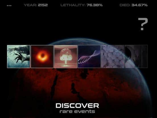 Из сотен уникальных событий и катаклизмов собери свою собственную катастрофу - столкновение с астероидом, ледниковую эпоху, зомби-апокалипсис, вспышку гамма-излучения и многое другое.