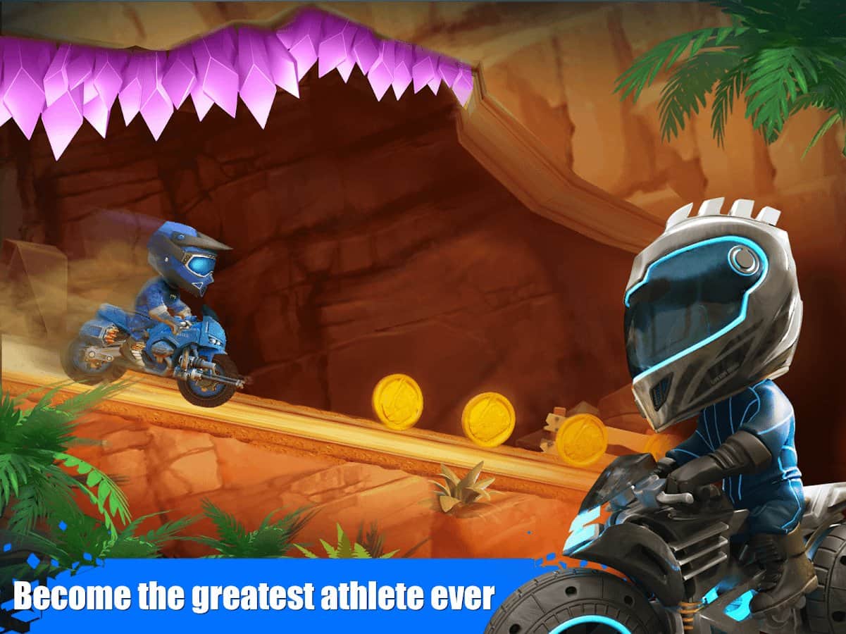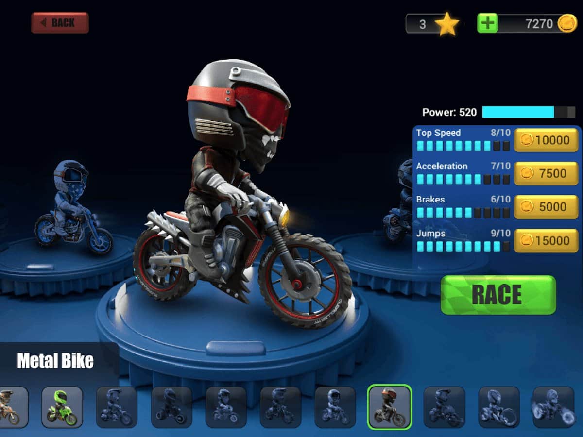 Elite Trials - Гоняйте по холмам и проходите уровни на время. За каждый пройденный уровень вы будете получать монеты и открывать новые байки. Чем дальше вы будете проходить тем более крутой байк вам будет нужен, да ещё и к тому же нужно будет улучшать свой байк.