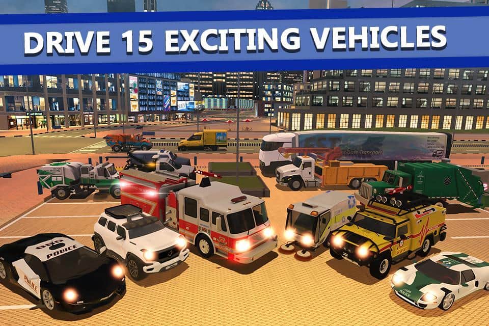 Приведите город в максимальный порядок и хорошую безопасность вместе с игрой-симулятором Emergency Driver Sim: City Hero. Выбирайте машину, жмите газ и приступайте к работе! У вас есть огромный выбор машин с функционалом: пожарная для тушения пожаров, полицейская для ареста преступников, мусорная для сбора и вывоза мусора, кран для перевозки больших предметов, доставочная для доставки еды или посылок, грузовик для перевозки и другие. Открыть их можно за монеты, которые зарабатываешь на заданиях.