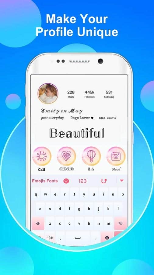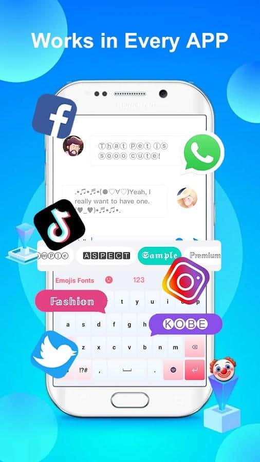 Используя интуитивную и стильную клавиатуру Emojis Fonts & Fancy Keyboard со множеством красивых шрифтов на своем устройстве, вы сможете напечатать и отправить оригинальный текст своим друзьям, прикрепив к нему забавные стикеры и смайлики. Меняйте тему клавиатуры под свои предпочтения, применяйте ее для переписки в социальных сетях и мессенджерах, пользуйтесь функциями автоматического исправления ошибок и автозаполнения. Программа работает со всеми приложениями соцсетей смартфона. Вы сможете писать стильные тексты, биографию, пресс-релизы, делать публикации и многое другое.