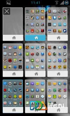Возможность оптимизации свободного места на экране: выбрать интересную анимацию переключения между экранами (более 6 видов), а также отображать все рабочие экраны одновременно в виде миниатюр