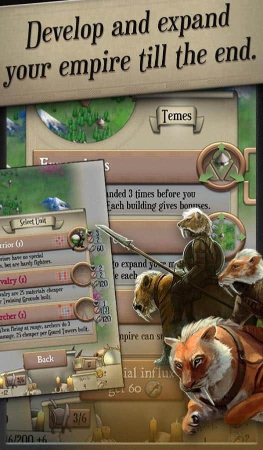 EMPIRE: Deck Building Strategy - пошаговая стратегия на андроид, в которой вам предстоит играть за варварские плена, которые хотят найти новые цивилизации. Добывайте ресурсы, увеличивайте свою армию, расширяйте свои территории, и уничтожайте своих врагов. Бои проходят в пошаговом режиме, любители такого жанра оценят игру по достоинству.