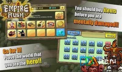 Empire Rush для андроид. Отличная игра жанра Tower defence. В игре большое количество уровней, 60 типов врагов, 54 локации в трех местностях. Строим башни покупаем оружие и не пропускаем врагов.