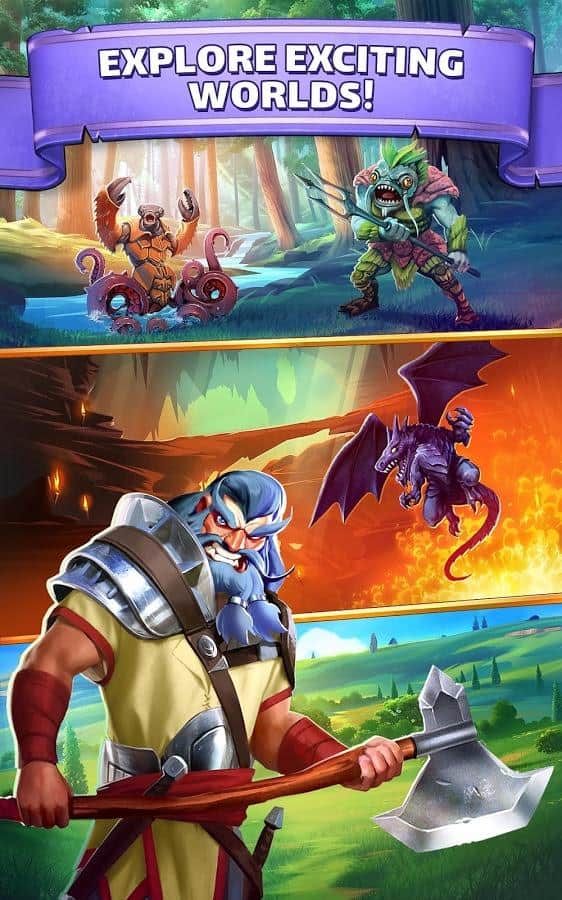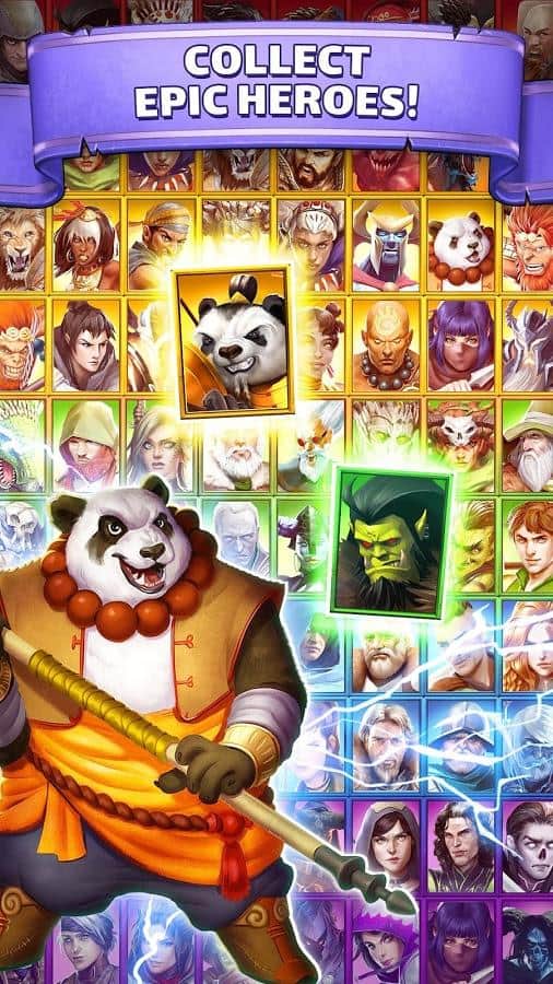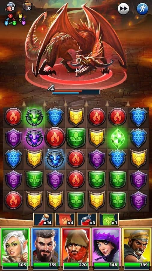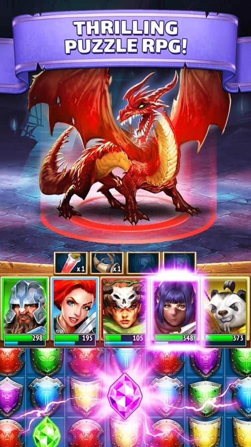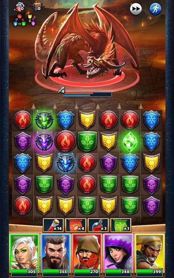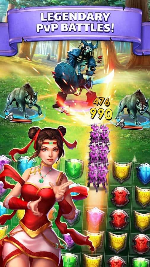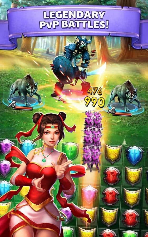Empires & Puzzles - Весьма необычный подход к играм жанра три в ряд. Мало того что эта игра онлайн, так здесь ещё и реальные сражения с другими игроками. Первым делом вам нужно будет собрать свое войско, призывая их с помощью врат, вы сможете получить воинов с различными способностями, и различных цветов. Цвет очень важен, ведь в зависимости от того какие щиты вы ломаете, будет пополнятся мана персонажа с данным цветом. Когда шкала заполнится вы сможете использовать спец умение. Так же, вам нужно будет развивать свой замок, улучшая его различные аспекты. А самое главное это динамические битвы на арене против реальных игроков.