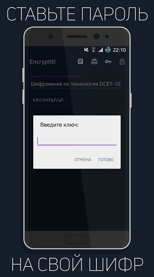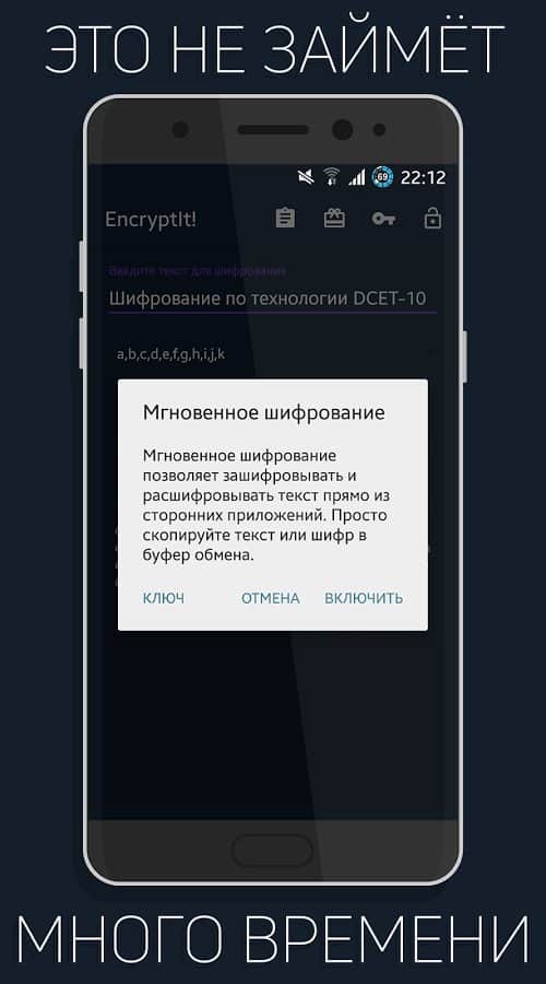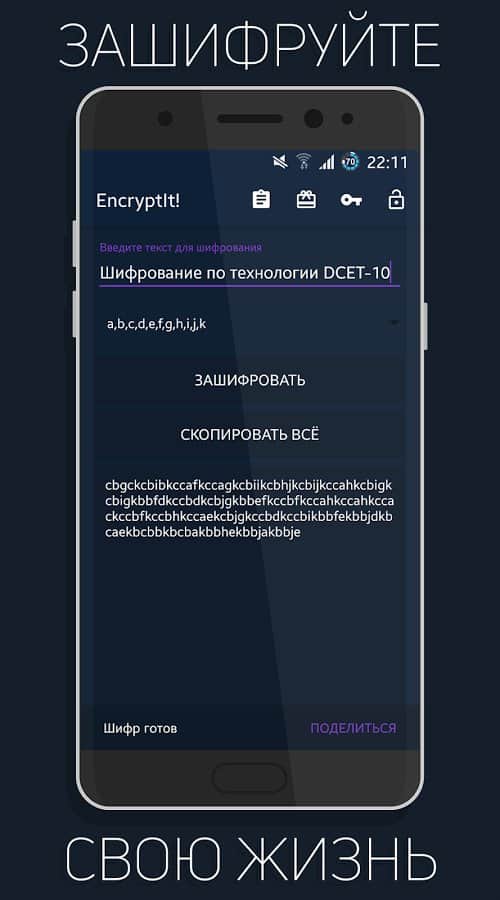 Encryptit! - Text encryption - Это простое но очень действенное приложение для тех кто не любит когда их личную информацию читают. Сейчас появилось множество историй о том что все социальные сети и многие другие ресурсы по обмену данными следят за своими пользователями, читают их переписки и многое другое. Так вот если вы хотите общаться со своими друзьями на весьма пикантные темы, и при этом точно хотите быть уверены что это никто не прочитает, тогда можно просто зашифровать свой текст. Сделать это очень просто, набираете его в этом приложении и жмете зашифровать, что получилось отправляете другу, он же закидывает этот текст в приложение у себя, и жмет расшифровать, готово.