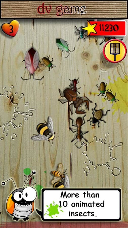 End of insects – веселая игра на андроид, где вы будете давить насекомых. В этой игре с ненавязчивым игровым процессом вашей задачей будет давить насекомых появляющихся у вас на экране телефона или планшета. Игра порадует вас разнообразием представленных тараканов, жуков, клопов и других насекомых. Давите всех бегающих по экрану насекомых и остерегайтесь пчел, ос и шмелей. В игре представлено более 10 анимированных насекомых, захватывающий игровой процесс и четыре вида пчел. Тренируйте свою реакцию и скорость пальцев и уничтожайте всех насекомых. Очистите экран своего телефона от насекомых и набирайте очки.