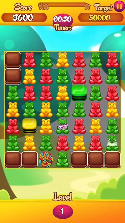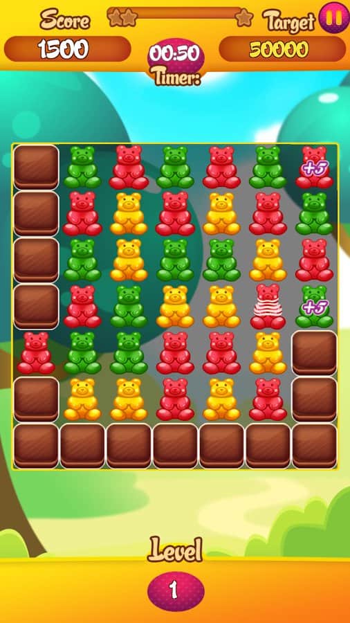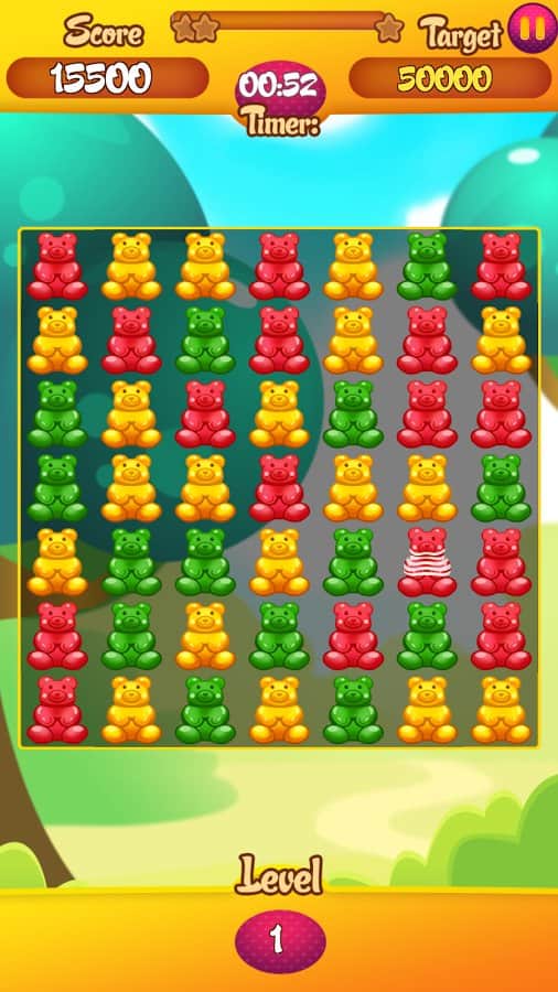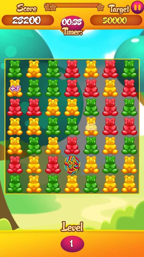 Endless Gummy Bear – игра на андроид, из жанра три в ряд где вы будете составлять желейных мишек в ряды. Отправляйтесь в увлекательное путешествие по миру сладостей и составляйте ряды из трех и более одинаковых по цвету мишек в ряд. Очищайте игровое поле от медведей и набирайте очки. На поле то и дело будут появляться особенные мишки и бонусы, собирайте их и получайте многочисленные усиления или дополнительные балы. Весело проводите свое свободное время и добивайтесь отличных результатов. Играйте в эту игру со своими друзьями и устанавливайте рекорд.