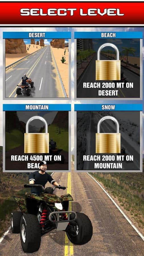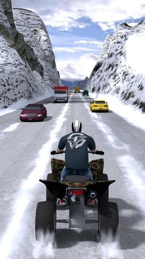 Под колесами снег, песок, а иногда и простой асфальт, но всегда нужно продолжать двигаться вперед в Enfless Quad ATV. Движение на максимальной скорости предпочтительнее, но всегда нужно обращать внимание на траффик. Важно не попасть в аварию и добраться до финиша без приключений, получив только эмоции от быстрой езды. Улучшай свой квадроцикл, увеличивая его маневренность и скорость перемещения, и открывай новые уникальные трассы в красочном виртуальном мире. Отличная реакция и максимальная скорость - вот что сделает игрового персонажа королем дорог!