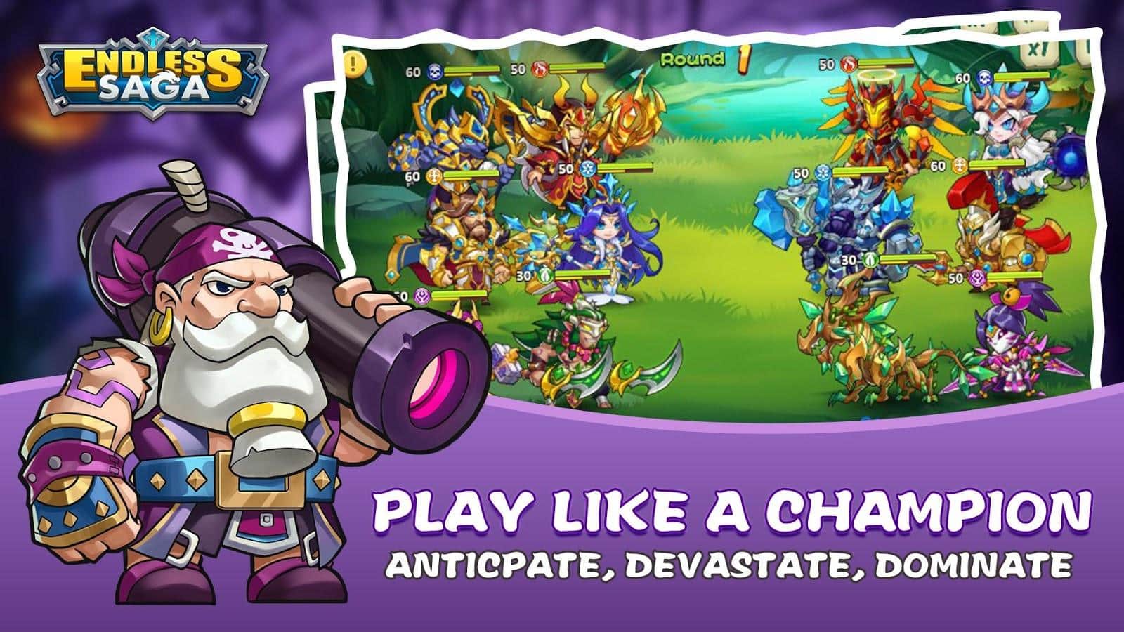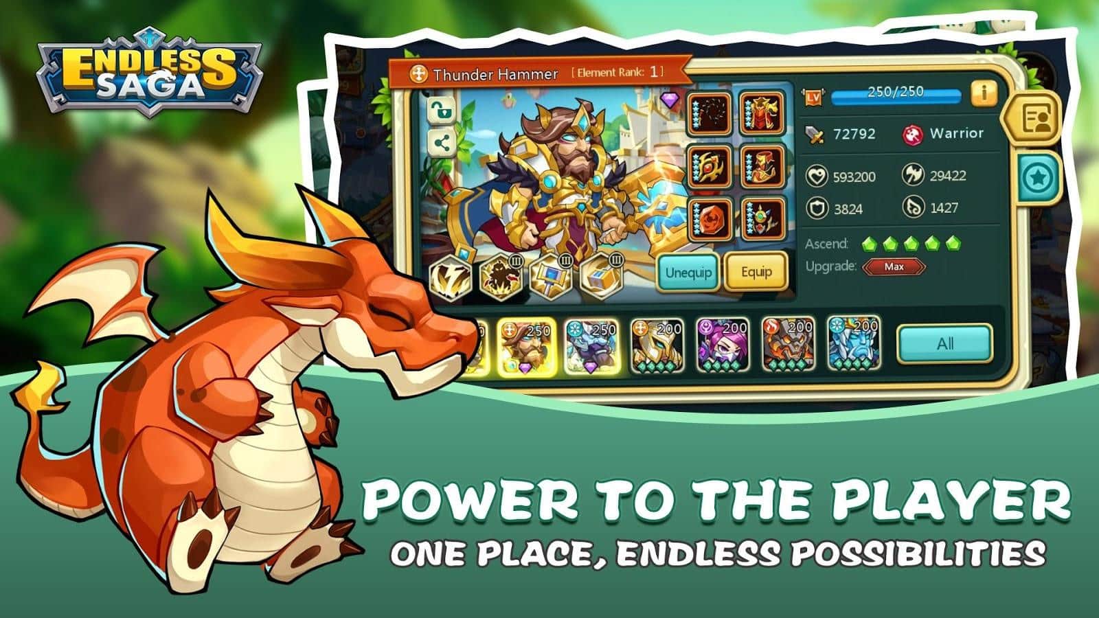 Endless Saga – ролевая игра на андроид, где вы будете сражаться с монстрами. Вашей главной задачей в этой игре будет собрать непобедимую команду героев и сражаться с врагами получая призы. Ваша команда будет состоять из персонажей, которые имеют власть над различными стихиями. Комбинируйте между собой силы всех героев и побеждайте противников. Призывайте на поле боя сильных героев и сокрушайте боссов. В этой игре присутствует функция автоматического боя, ваши герои будут сражаться даже когда вы не играете в игру.