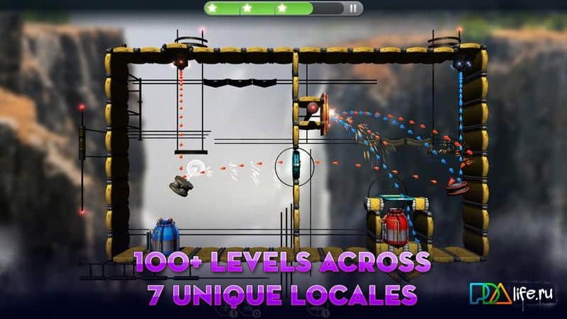 Enigmo: Explore - игра головоломка на андроид, где вам предстоит наполнить бочки маслом. Головоломка основана на законах физики, в которой необходимо передвигать дополнительные вращающиеся элементы, располагая их так, чтобы не одна капля не пролилась мимо бочки. Проводите эксперименты и находите несколько возможных вариантов для решения этой задачи. Сложная головоломка с различными тематическими средами, каждая среда является одним из чудес света с отличным звуковым сопровождением для каждого уровня.
