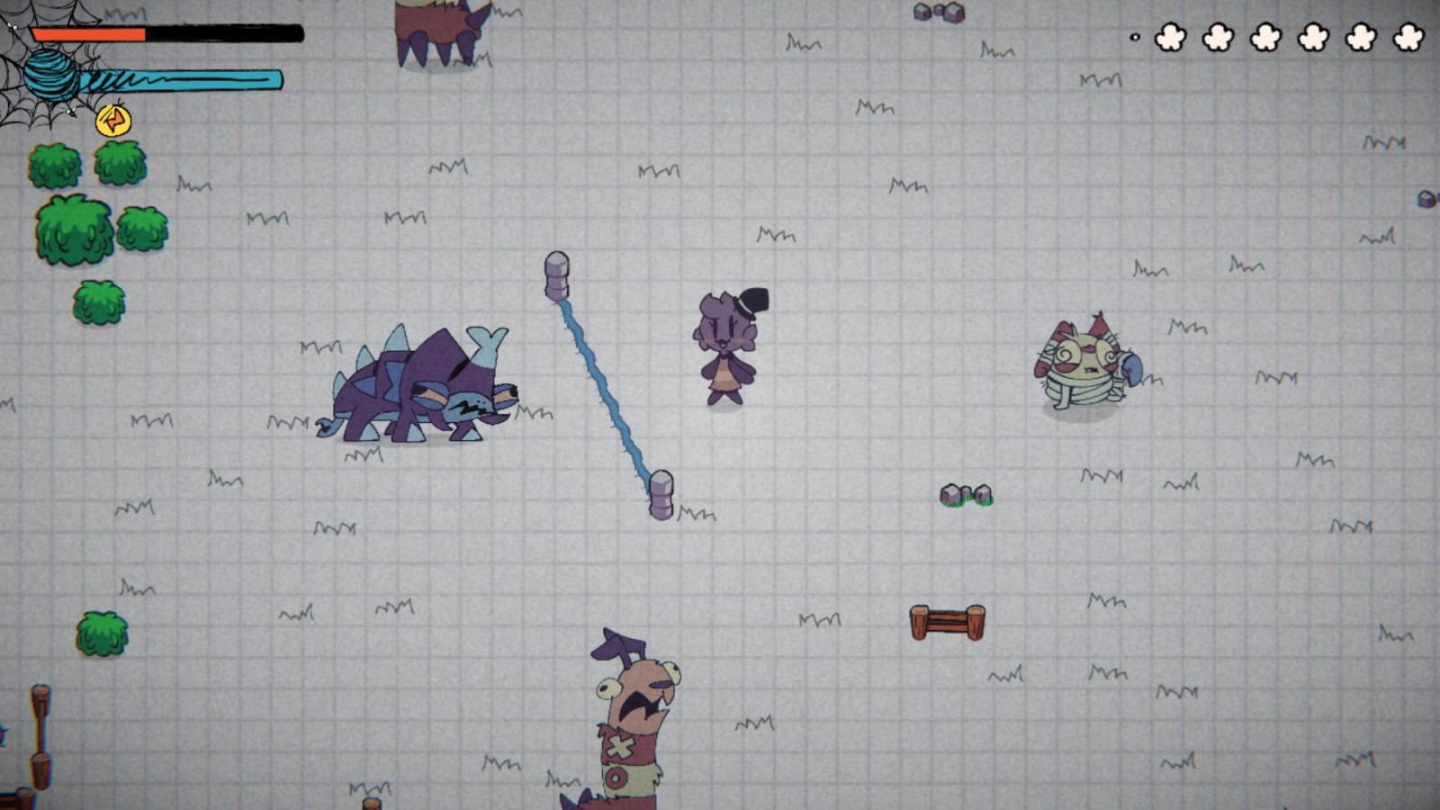 Enwebbed - Mrs. Web — милый паучок и талантливая распорядительница собственного цирка насекомых. Но беда: некоторые её артисты сбежали и начали буянить! Используйте паутину, чтобы поймать их и восстановить порядок. Передвигайтесь по карте, делайте рывки, находите непослушных жуков и обводите их петлёй из паутины, чтобы обезвредить. Пойманные насекомые дадут особые способности, усиливающие вашу паутину, что позволит справляться с более опасными противниками. Следите за количеством паутины и берегите себя — любое повреждение может всё испортить.