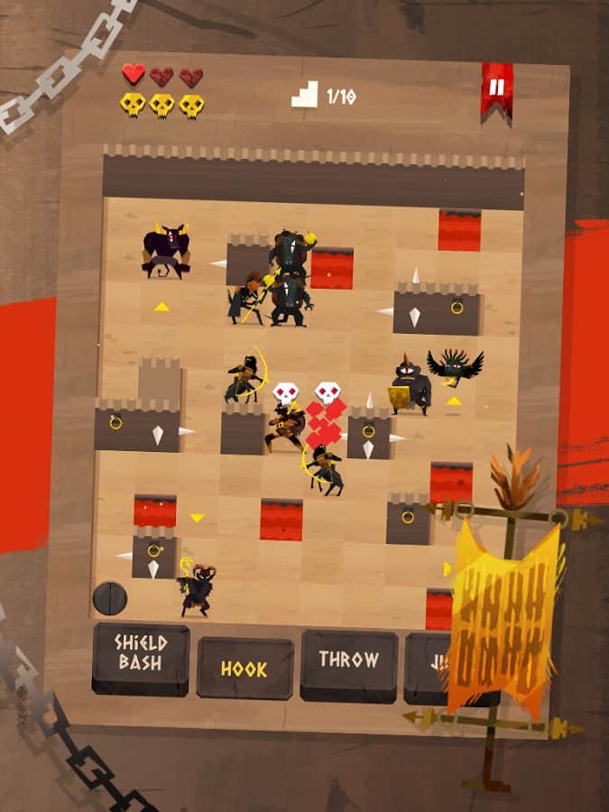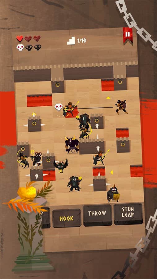 ENYO – игра на андроид, где вы возьмете под свой контроль греческую богиню войны Эньо. В этой игре вам предстоит спуститься в мрачные лабиринты подземелья и сразиться там с бесчисленным количеством врагов. Вооружайтесь крюком и щитом и с помощью них толкайте монстров в отверстия с лавой и на острые шипы. Вашей главной задачей будет собрать на каждом из уровней по три легендарных артефакта и победить всех врагов. Тренируйте свою меткость и точность бросков, чтобы цеплять врагов и утаскивать их в западню. Создавайте мощные комбо удары и одним махом побеждайте монстров. Набирайте очки и соревнуйтесь с другими игроками за лучшие места в таблице лидеров.