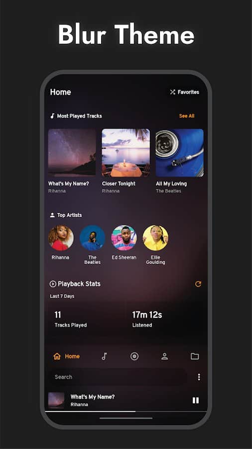 Eon Music Player - прослушайте любой аудиофайл всего в один миг! Человеку очень сложно обойтись без музыки, поэтому этот музыкальный проигрыватель предназначен для прослушивания различных вопроизведений на любую тематику. Изучите каждую функцию, поэкспериментируйте над собственным редактированием определенных музыкальных дорожек и создайте множество удобных папок, по каким будете воспроизводить поиск. Переключайтесь между разными темами и зацените дизайн на них по отдельности, при этом не забывая что самое главное — способности в приложении.