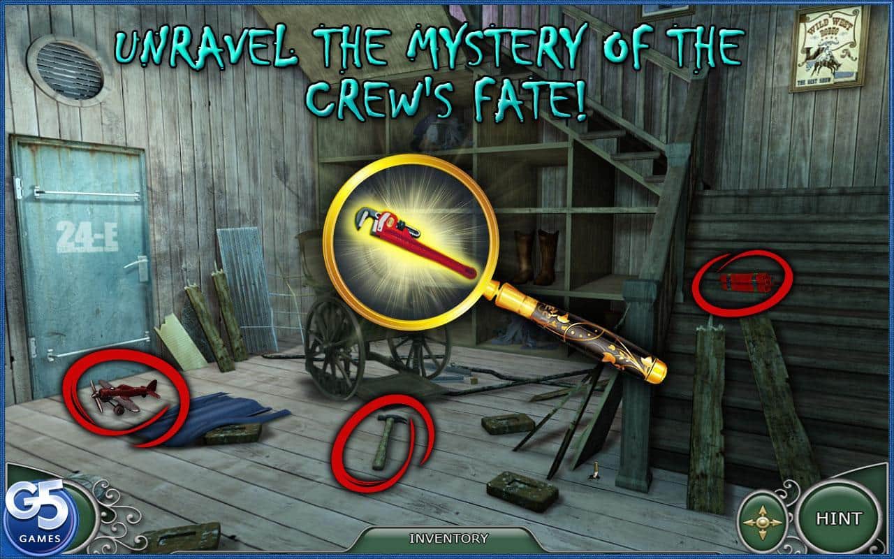 Проклятый корабль / Epic Adventures:Cursed Onboard - В 1970 году корабль под названием Жангада отправился в плавание и с тех пор его никто никогда не видел. Судьба корабля и его команды покрыта мраком и всякий, кто пытался его найти, также бесследно исчезал. Хватит ли у вас смелости отправится в это полное опасностей, но одновременно очень захватывающее приключение в джунгли Амазонки. Вам предстоит исследовать пугающие локации, найти скрытые предметы и разгадать увлекательные головоломки. Снимите древнее проклятие и верните покой измученным душам! Вас ждут 25 пугающих локаций, 10 неповторимых мини-игр, 8 восхитительных глав, а также удивительная и трагическая история.