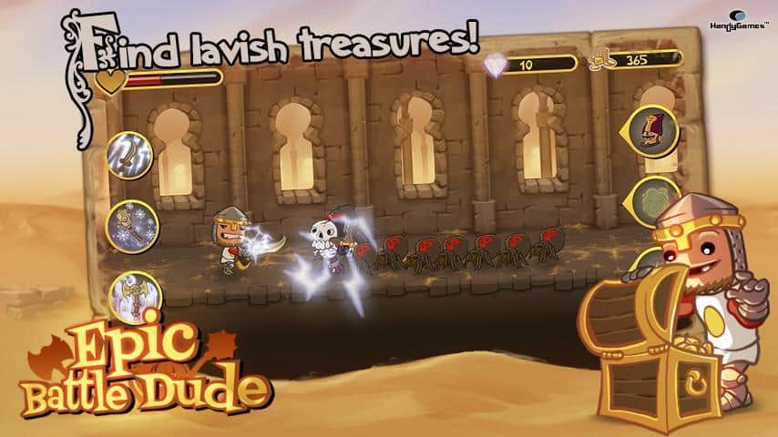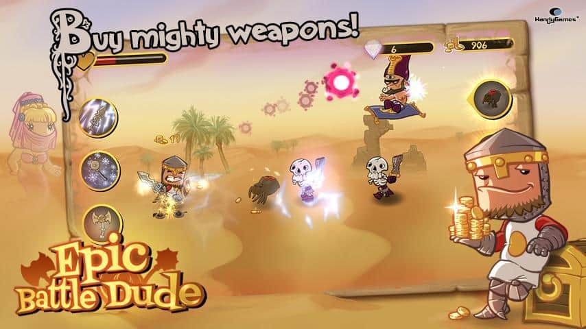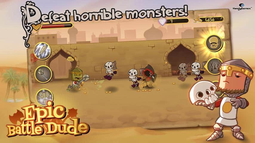 Epic Battle Dude - Простенькая, но очень затягивающая, аркада на андроид. Ее выпустила знаменитая компания – HandyGames. Ваш герой живет в замке, но его беспечная жизнь закончилась, когда на замок начали нападать монстры. Они похитили твою королеву, и вам предстоит ее вернуть. Пришло время вспомнить молодость, взять оружие в руки и выходить на охоту. Также вы можете улучшать характеристики своего героя.