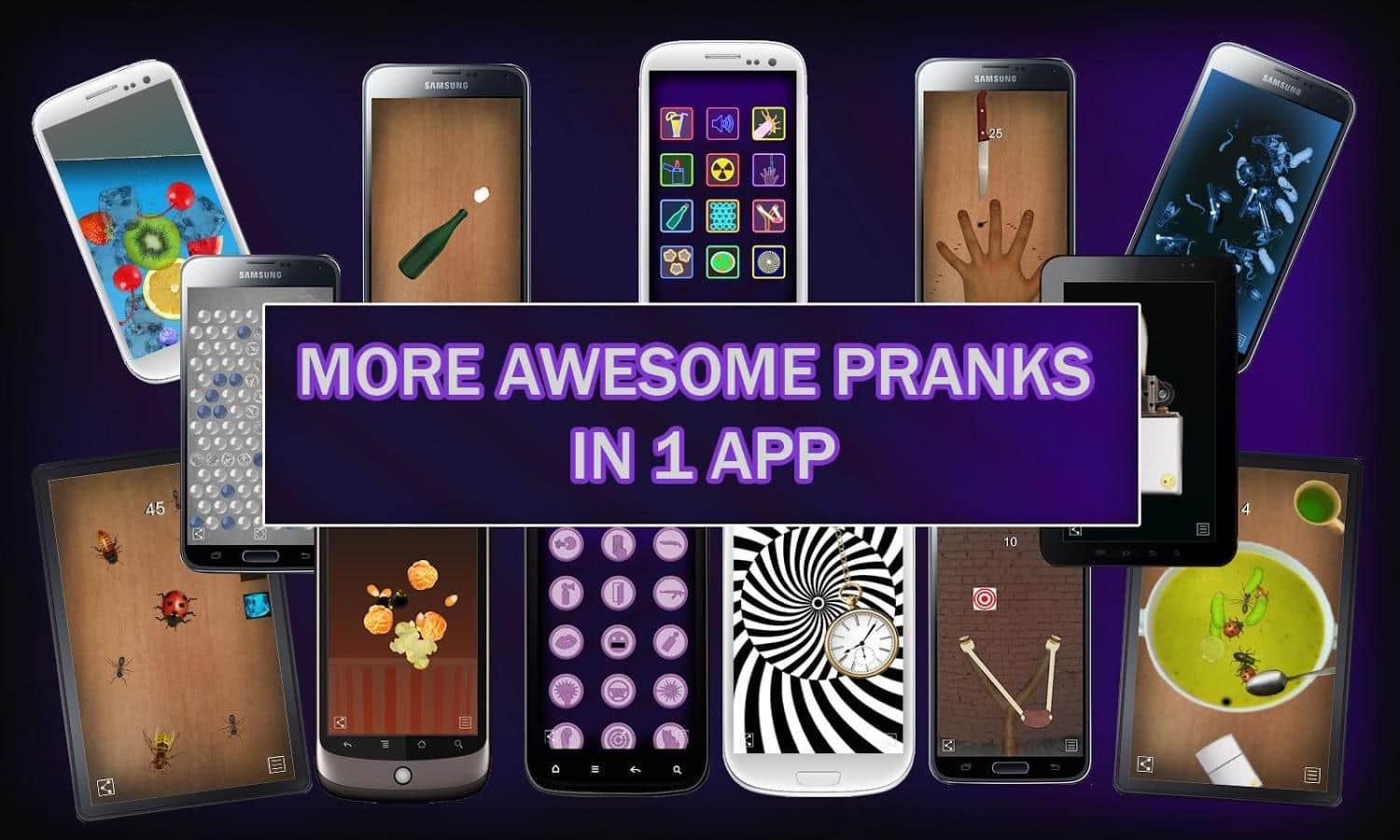Epic Pranks Simulator – симулятор на андроид, в котором собраны многочисленные мини-игры и приколы. Это приложение отлично подойдет для любого возраста в нем каждый найдет для себя, что ни будь интересное. В игре собрано 12 различных приколов таких как: симулятор напитка с шевелящимися в нем насекомыми, симулятор зажигалки-фонаря, забавные звуковые эффекты, игра убийца насекомых, рентген-сканер, рука против ножа, бутылочка, лопанье пузырей, рогатка, суп с насекомыми и гипнотическая спираль. Играйте в эту игру и весело проводите свое свободное время, разыгрывая своих друзей забавными приколами.