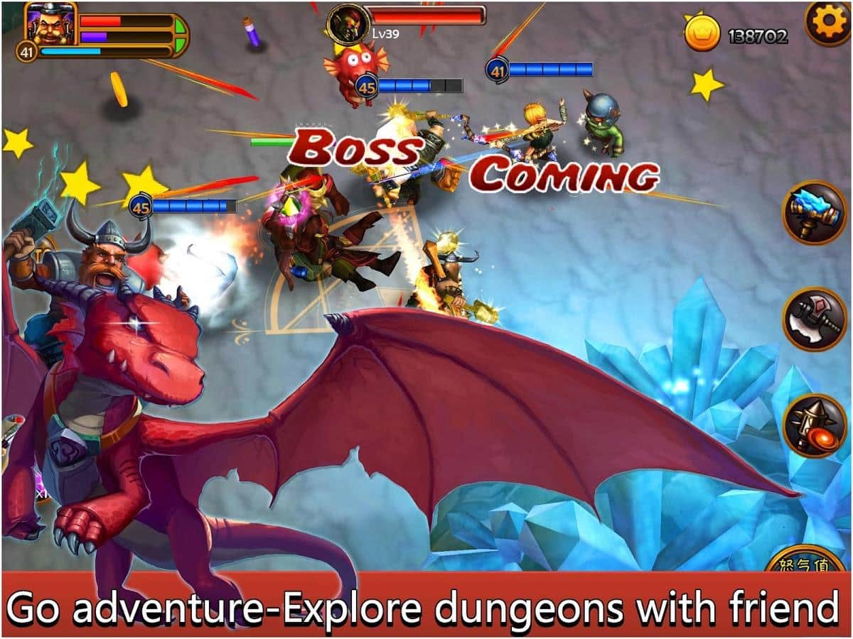 Epic Raiders – отличный экшен на андроид, с элементами RPG. В этой игре вашей главной задачей будет уничтожить силы тьмы, которые угрожают всему человечеству. Выбирайте себе героя из тысячи представленных в игре персонажей и начинайте битву. Исследуйте сказочные локации игры вместе с другими героями и уничтожайте всех врагов вставших у вас на пути. Каждый герой в этой игре обладает своими уникальными способностями и возможностями, применяйте и комбинируйте их в битвах и достигайте невероятных результатов. Соберите свою непобедимую команду героев и бросайте вызов другим игрокам, защищая свое подземелье от них.