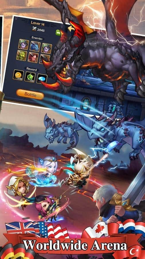 Epic Summoners – сформируйте свой отряд из отважных героев и сражайтесь с многочисленными врагами. В этой игре вы в компании смелых героев отправитесь в увлекательное путешествие, где повстречаете на своем пути множество врагов. Вступайте в битву с монстрами и сильными боссами и применяйте в бою уникальные способности каждого героя. По ходу игры пополняйте свой отряд новыми героями и учитывайте их умения в эпических битвах. После удачной битвы собирайте ценные трофеи и снаряжение для героев. Бросайте вызов сильным игрокам со всего мира и сражайтесь с ними на арене. Игра порадует вас многочисленными героями и несколькими режимами игры.