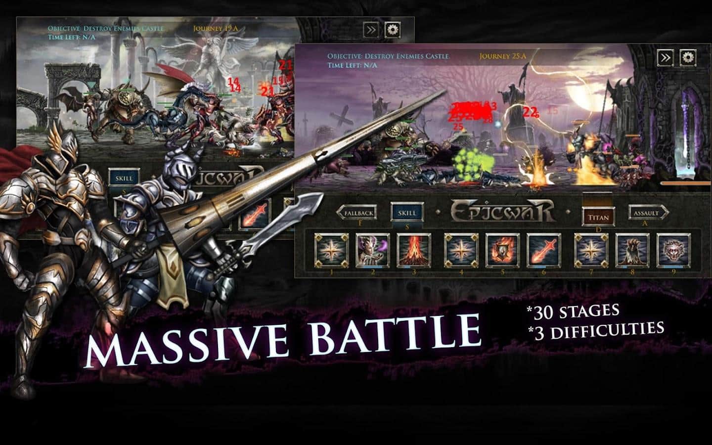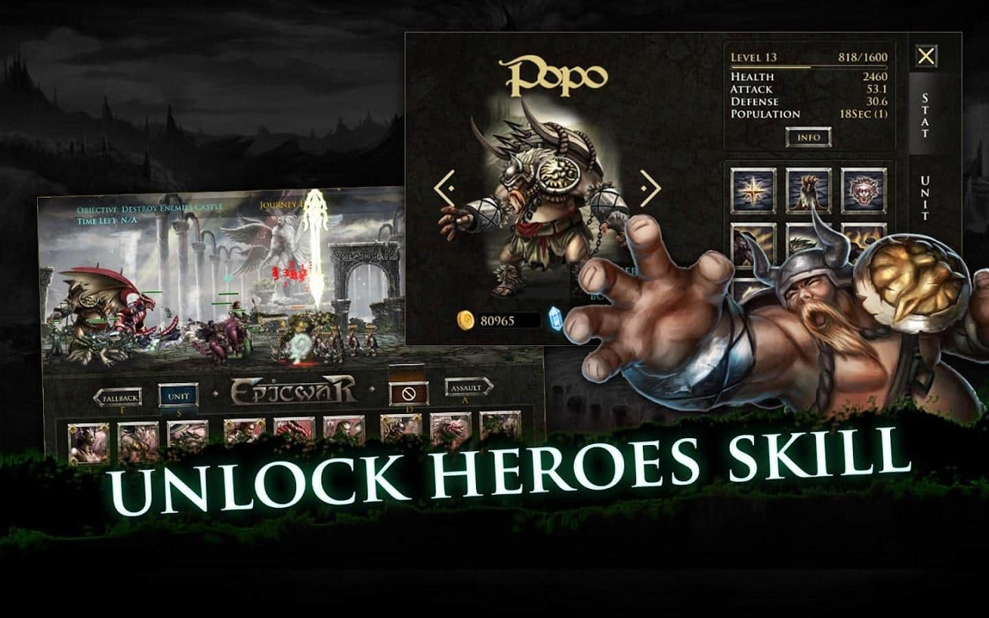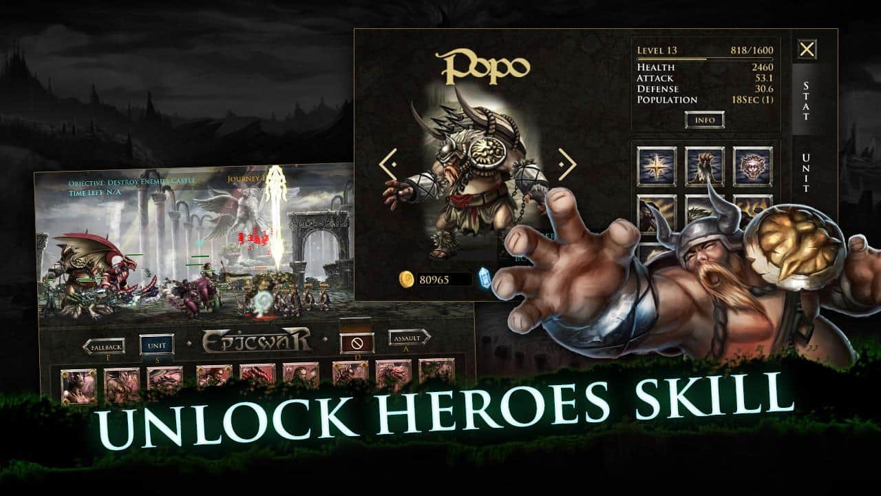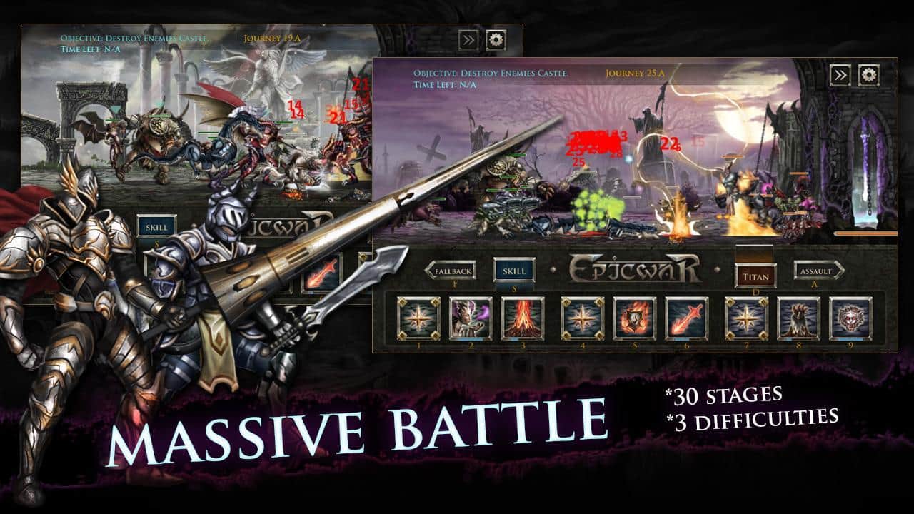 Epic War VI – стратегия на андроид, где вам предстоит собрать огромную армию воинов. Каждый герой в этой игре обладает уникальными умениями и оружием, учитывайте это в бою и разрабатывайте свою стратегию ведения боя. Соберите могущественную армию и приведите ее к победе над огромными титанами. Применяйте магию и мощное оружие и разгромите армию врагов. Учитывайте особенности каждого героя при разработке тактики и грамотно расставляйте их на поле боя. Бросайте вызов другим игрокам с разных уголков мира и сражайтесь за право быть лучшим. Особенностями игры является шесть неповторимых героев, более 40 боевых единиц и 10 мощных титанов.