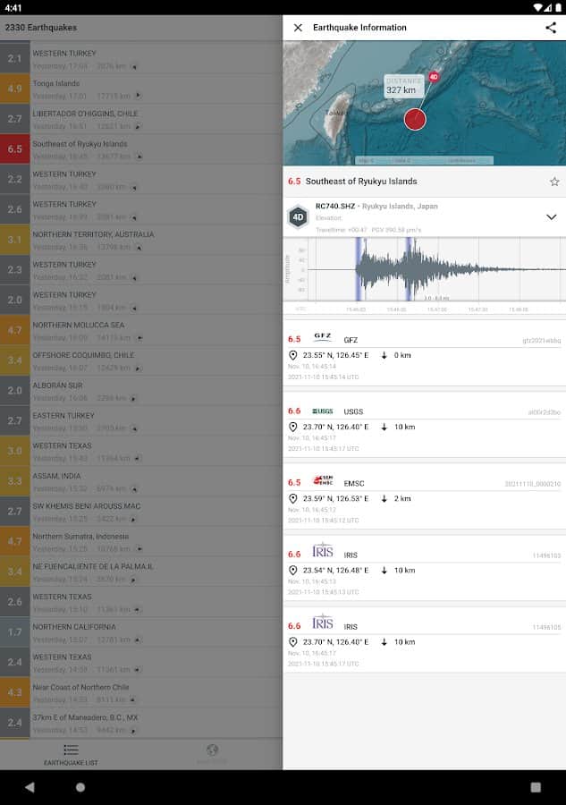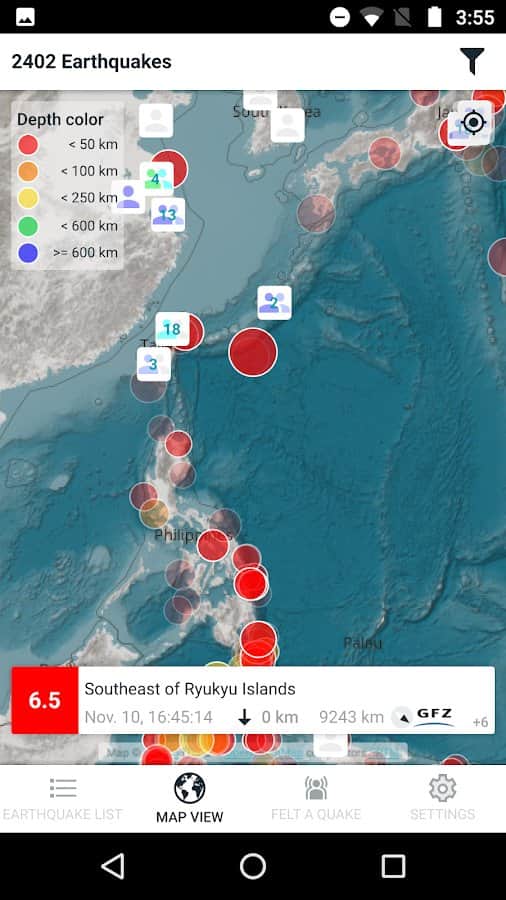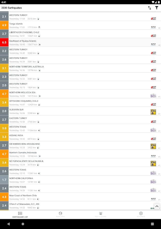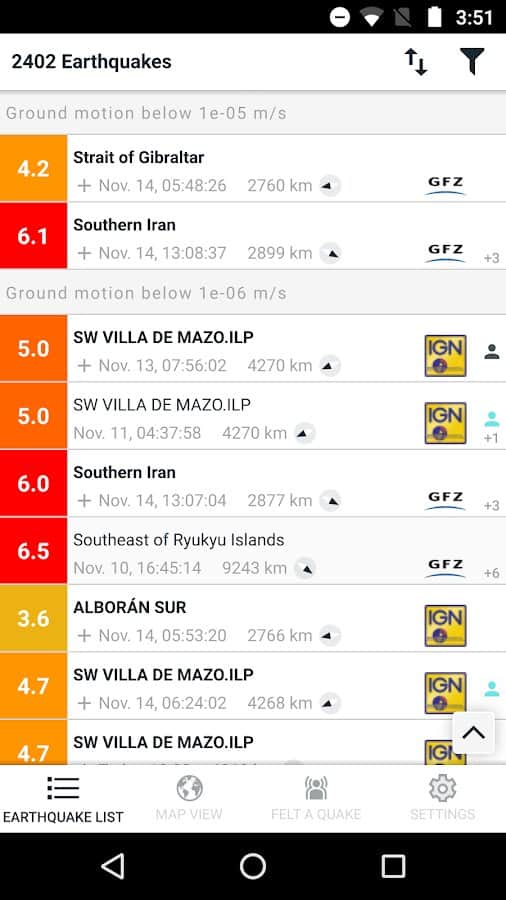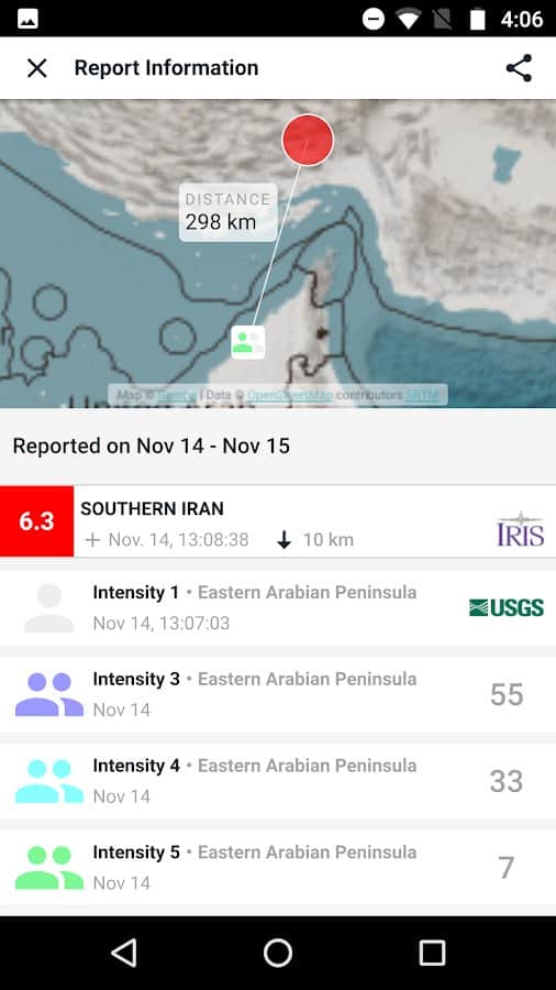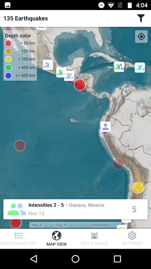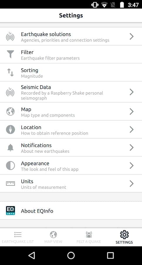 EQInfo - Если вы проживаете в сейсмоопасной зоне и хотите вовремя получать уведомления надвигающемся землетрясении или его высокой возможности, то это вы сможете сделать при помощи приложения EQInfo.