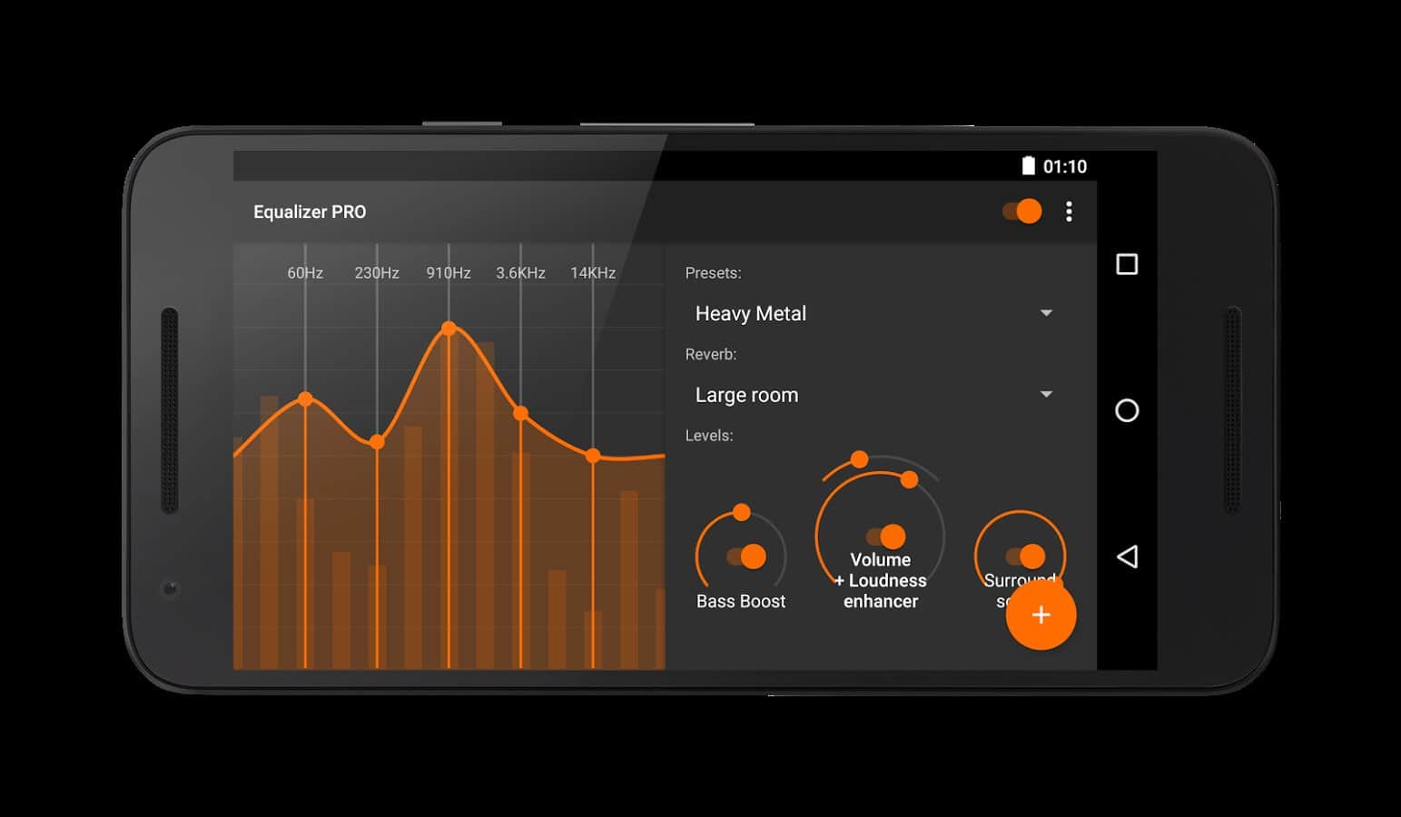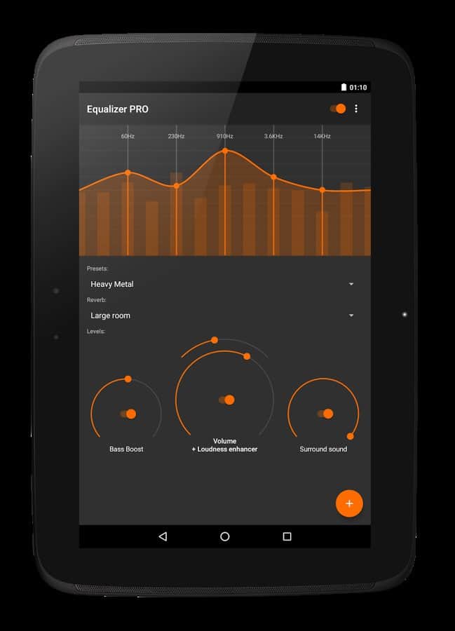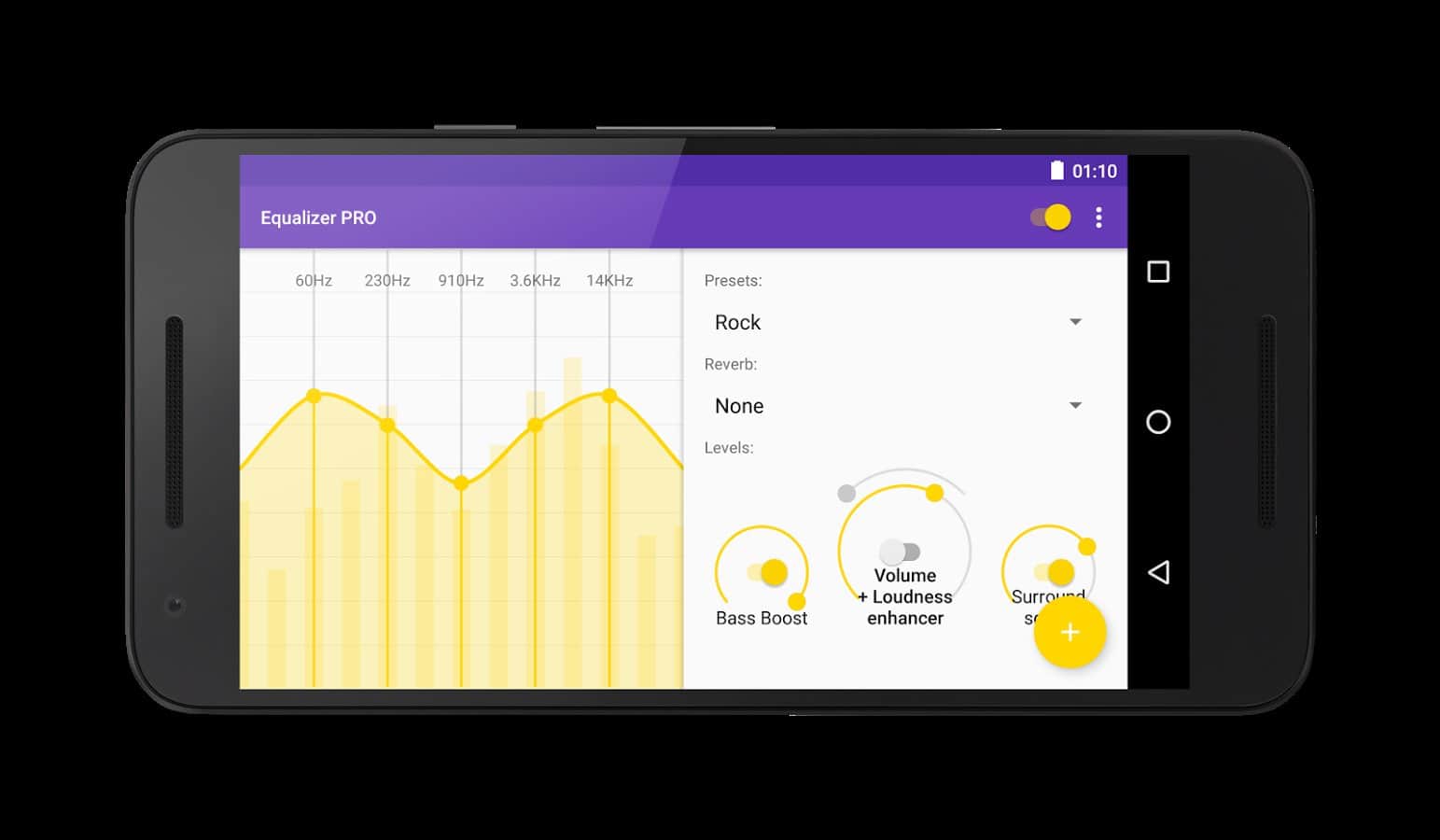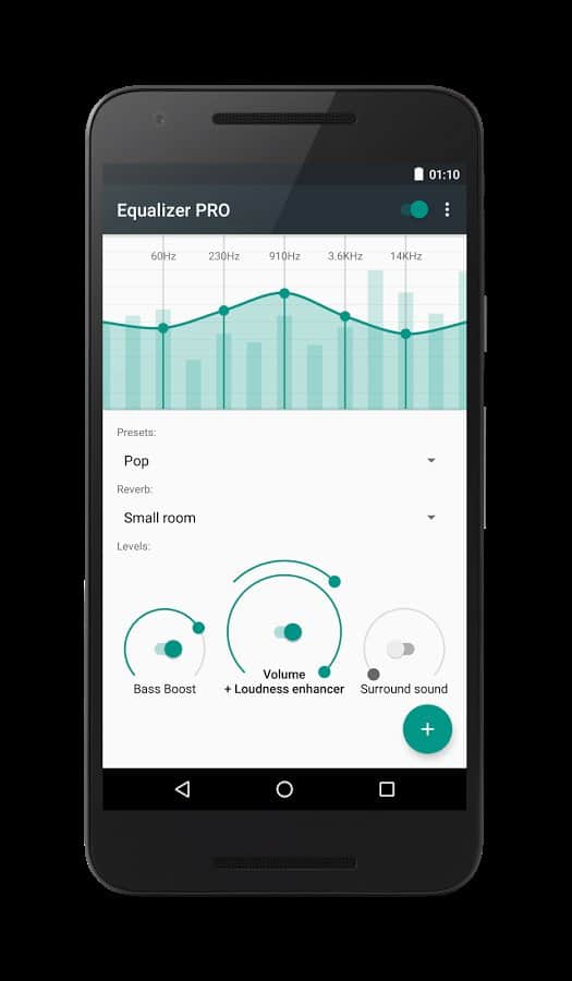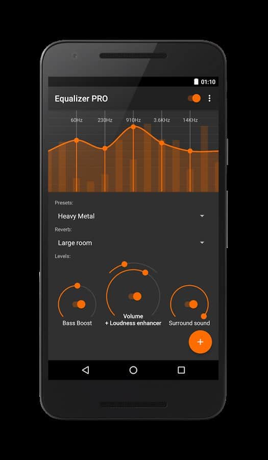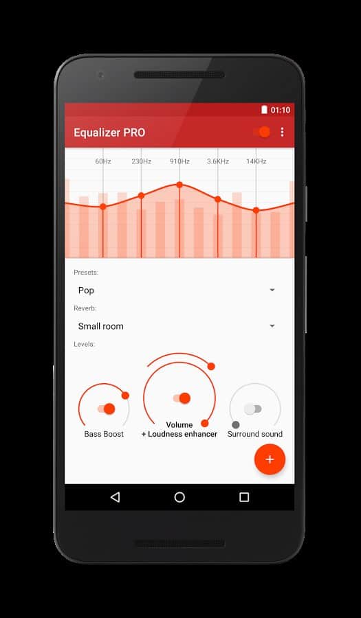 Equalizer - Bass Boost - Это приложение отлично подойдет для тех кто любит врубать музыку по громче. Однако усиление звука это далеко не основная функция данного приложения. Оно было создано для того что бы вы могли насладиться звучанием музыки, а сделать это можно будет настроив некоторые параметры, такие как тональность, баланс и прочее. Сделать это можно автоматически выбрав определенный шаблон под разный тип музыки. Однако если вам захочется то можно будет настроить все параметры вручную.