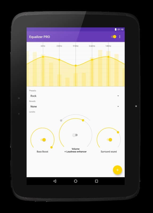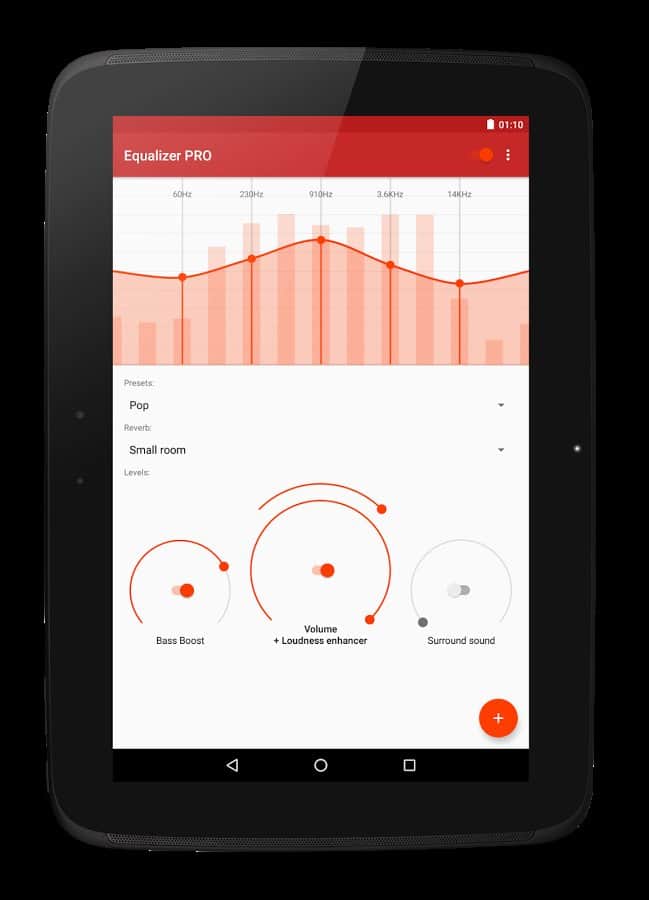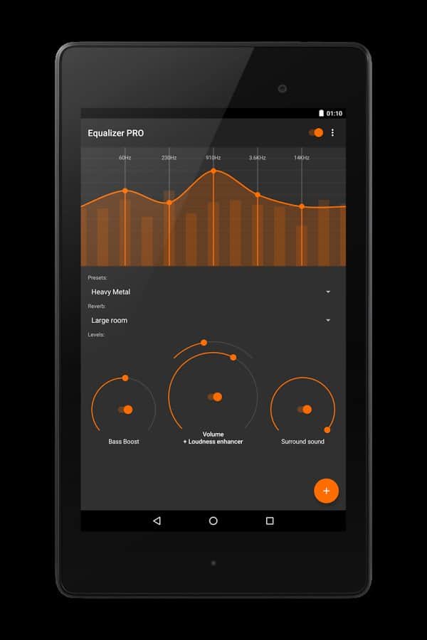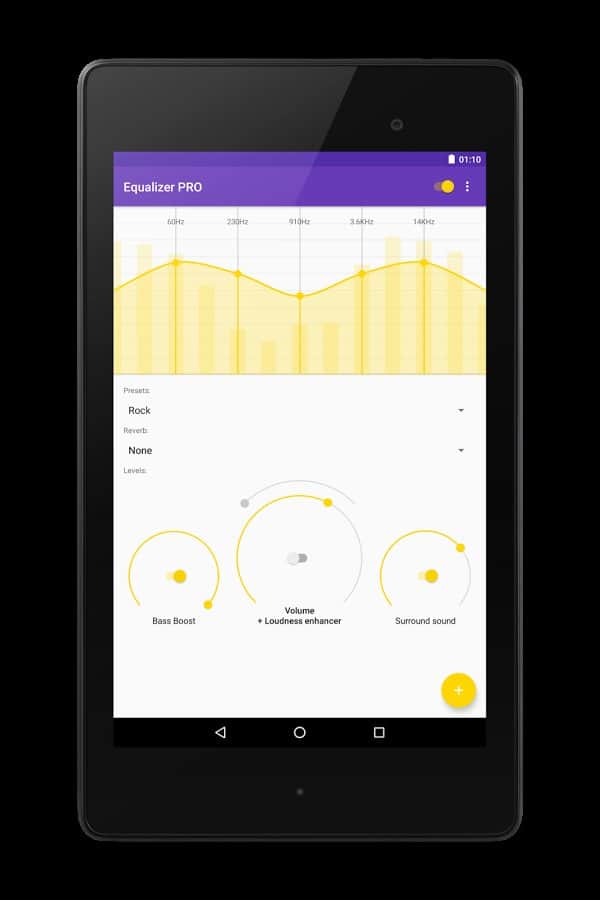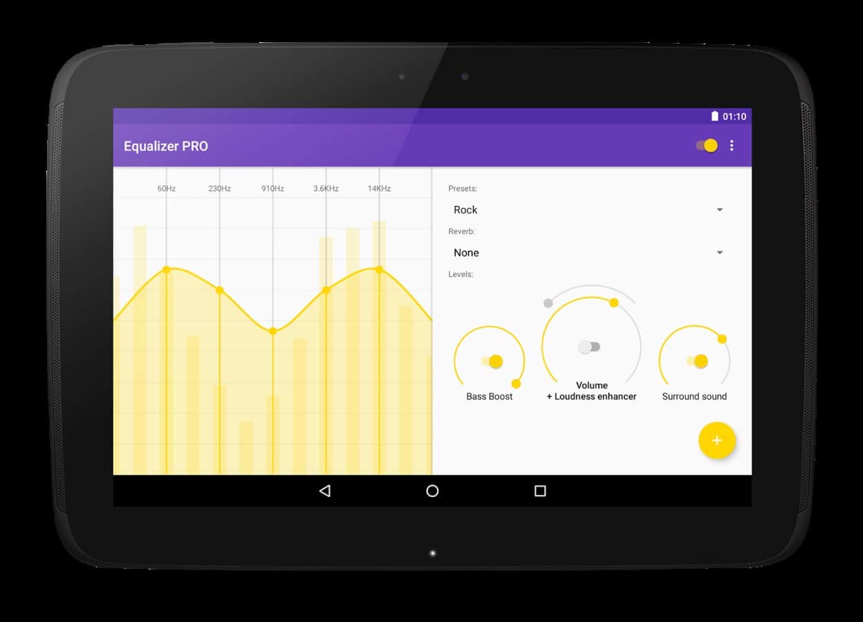 Equalizer - Bass Boost - Это приложение отлично подойдет для тех кто любит врубать музыку по громче. Однако усиление звука это далеко не основная функция данного приложения. Оно было создано для того что бы вы могли насладиться звучанием музыки, а сделать это можно будет настроив некоторые параметры, такие как тональность, баланс и прочее. Сделать это можно автоматически выбрав определенный шаблон под разный тип музыки. Однако если вам захочется то можно будет настроить все параметры вручную.