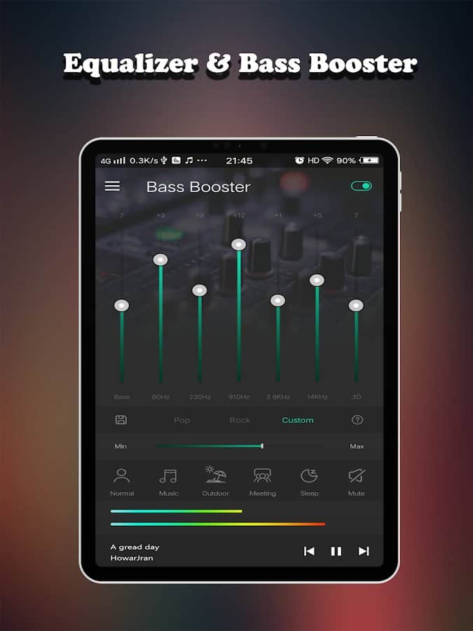 Любите слушать музыку? Так почему бы не насладиться ее отличным качеством? Приложение Equalizer FX Pro можно использовать для любого медиаплеера и даже на Вашем Android для регулирования громкости и улучшения качества звука, чтобы насладиться песнями различных исполнителей самых популярных жанров. Также оно визуализирует спектры и даёт возможность выбрать 1 из 6 режимов громкости для телефона: звонок, будильник, телефонный разговор, режим сна и другие, а подсказки помогут разобраться с использованием Эквалайзера.