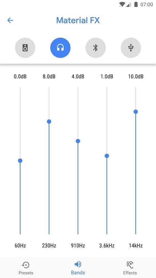 Equalizer: Material FX: данная программа является дополнительным эквалайзером для корректирования звука вашего смартфона при прослушивании музыки, просмотре фильмов и видео. Приложение позволяет изменять звук как на выходе из динамиков телефона, так и при использовании наушников, Bluetooth-колонки или usb-подключаемым устройствам. Работает в фоновом режиме и легко запускается через ярлык на основном меню. Прекрасно сочетается с любым плеером и приложением.