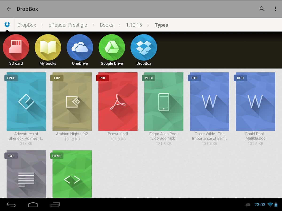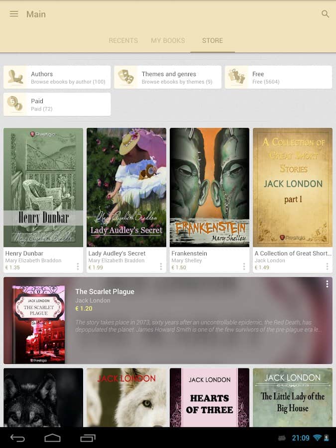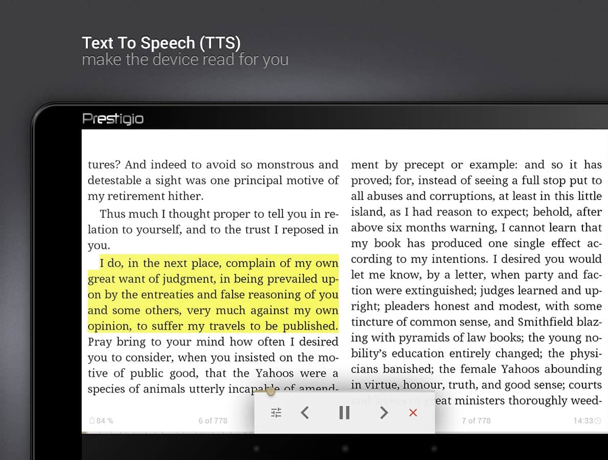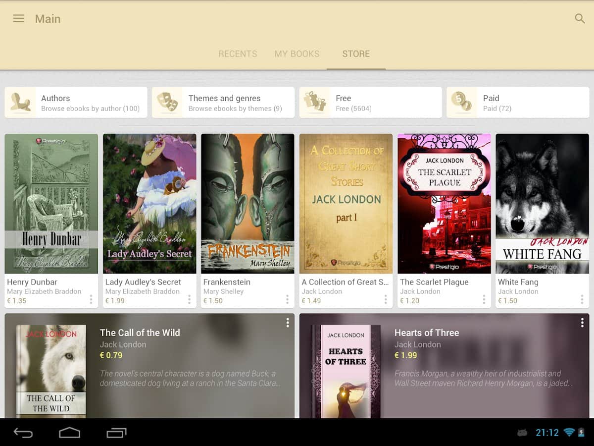 eReader Prestigio – классная программа для чтения книг с андроид смартфона/планшета от разработчиков Prestigio Plaza Ltd. eReader Prestigio поддерживает такие форматы книг как EPUB, OEB, FB2 (ZIP), HTML и TXT, а так же интерфейс на 22 языках и доступ к 620 000 книг. Интуитивный интерфейс и большое количество возможностей позволят вам максимально комфортно насладится чтением любимой книги.