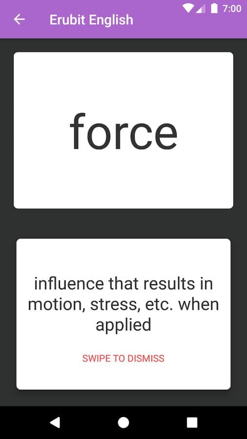 Хотите улучшить свои знания английского языка на базовом или продвинутым уровне? С приложением Erubit English вам нетрудно будет это сделать. При этом много времени на обучение уделять не нужно. Пополнить словарный запас новыми словами и выражениями, проверить уже изученный материал представится возможным каждый раз сразу же после разблокировки экрана вашего устройства в автоматическом offline режиме. Теперь бесплатно пройти курсы английского, быстро и эффективно подготовиться к тестам TOEIC® и TOEFL® можно каждому желающему на своём смартфоне.