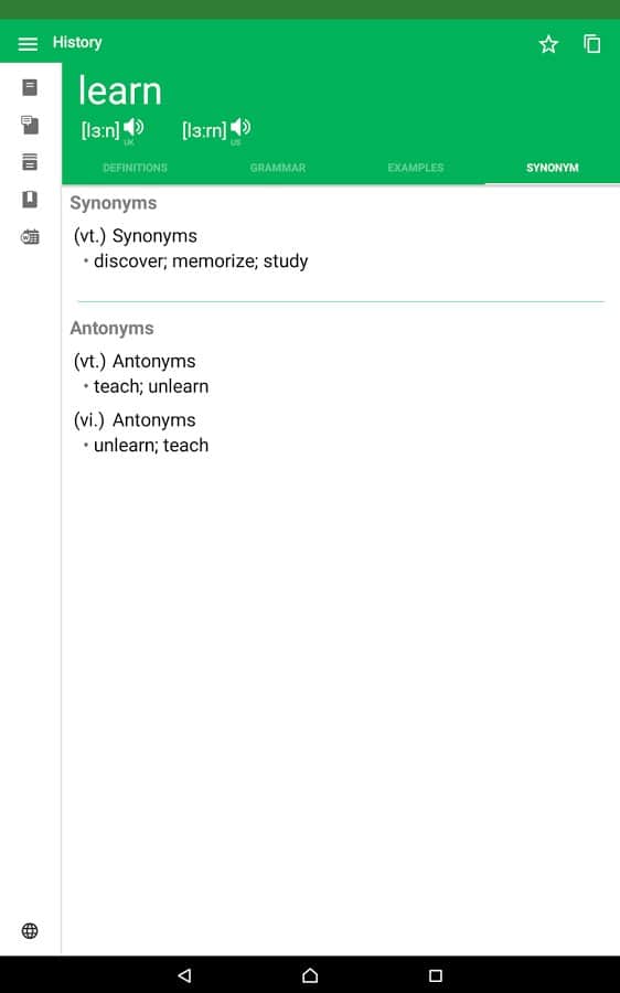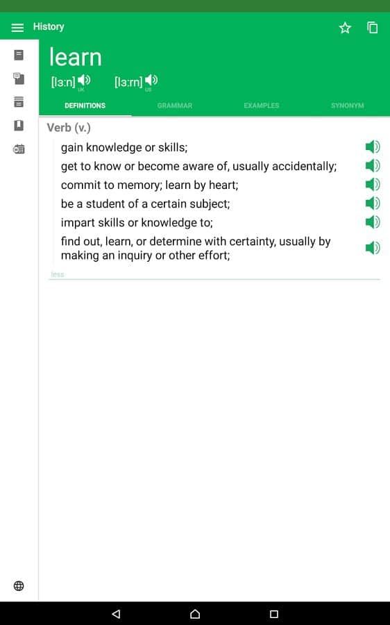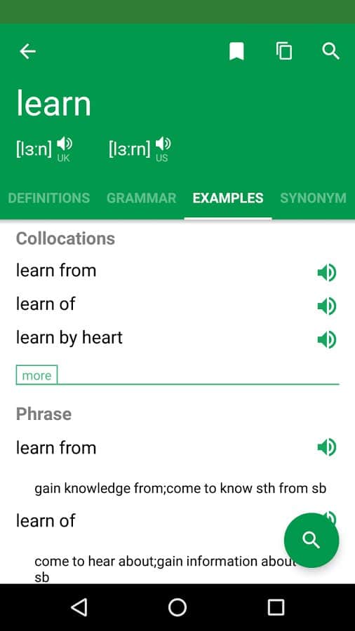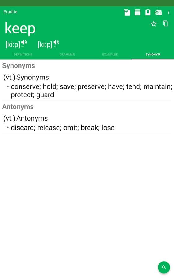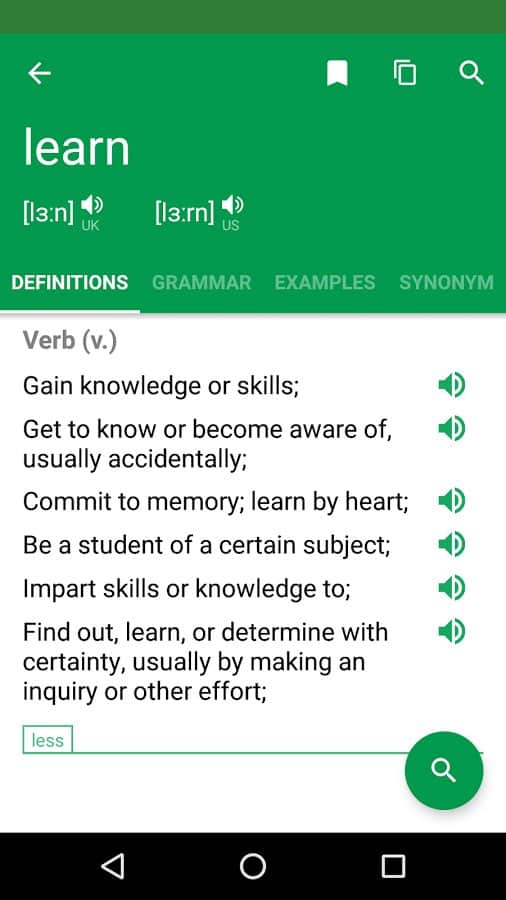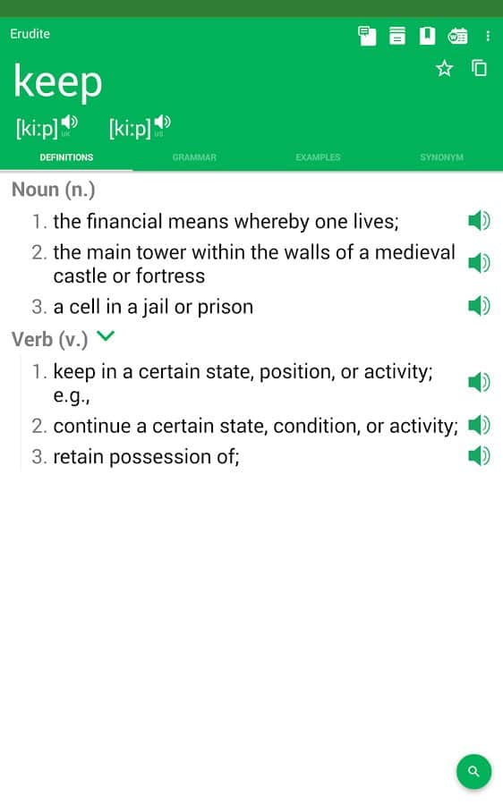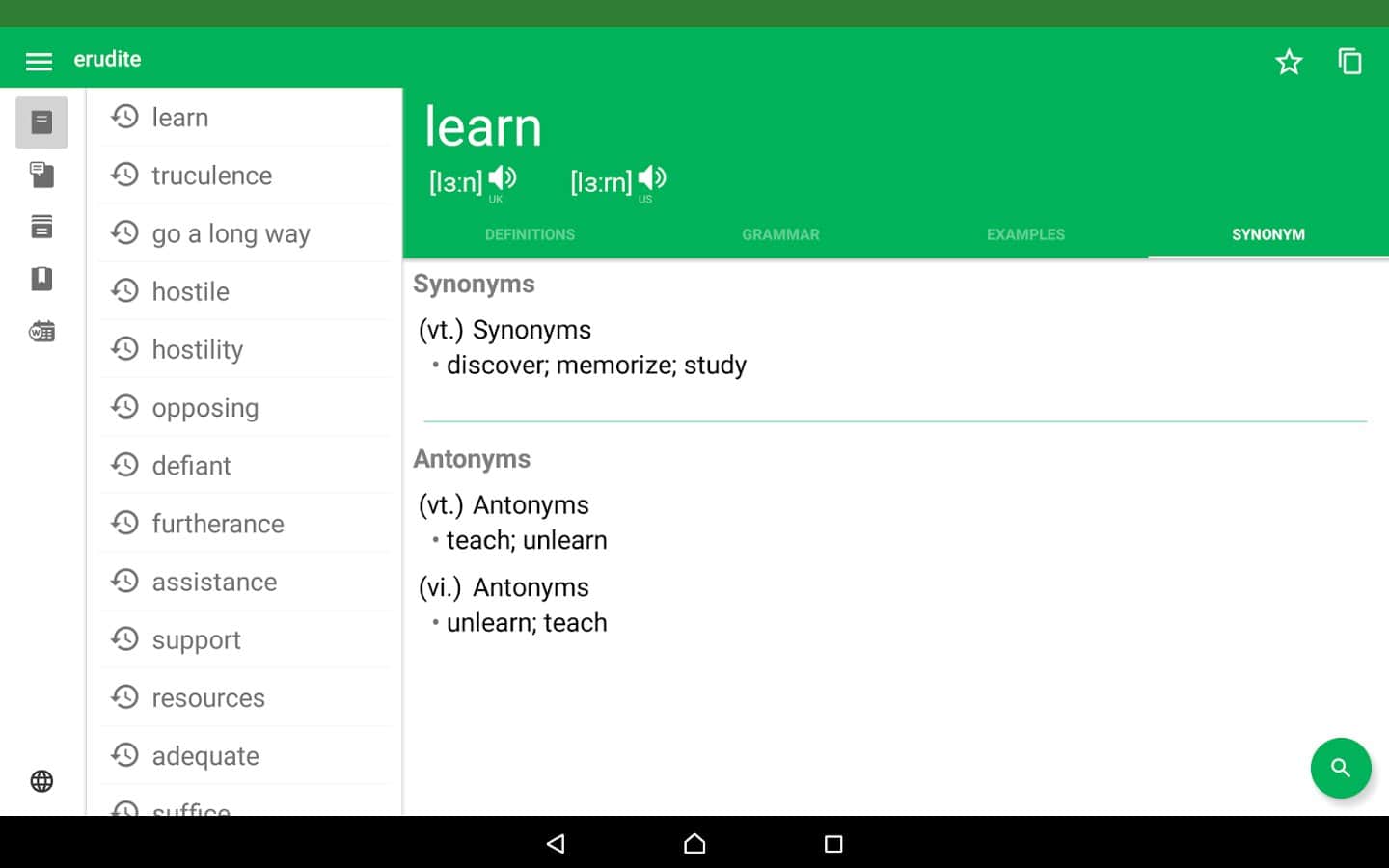 Erudite Dictionary - Одно из самых лучших приложений на сегодняшний день которое работает под управлением ОС Android. Одном приложение сочетаются сразу несколько. Таких как: переводчик, уроки английского языка, словарь разговорного текста как на английском так и на русском языке. Это приложение поможет вам как не кто другой при путешествий за границей!