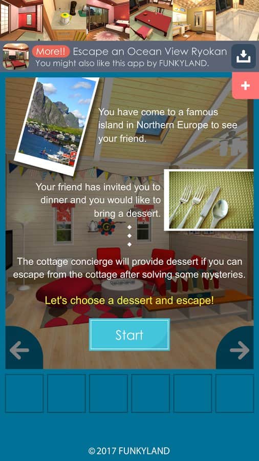 Escape a Nordic Cottage – увлекательная игра головоломка на андроид, где вы будете совершать побег из красивого коттеджа. В этой игре вы окажитесь в коттедже, выполненном в скандинавском стиле. Вашей главной задачей в этой игре будет собирать нужные вам предметы, решать непростые задачки и стараться покинуть как можно быстрее все комнаты дома. Перемещайтесь из одной локации в другую и ищите предметы, которые помогут вам в дальнейшем покинуть коттедж. Игра порадует вас красочной приятной графикой, расслабляющей атмосферой и идеальным решением для того чтобы убить свободное время.