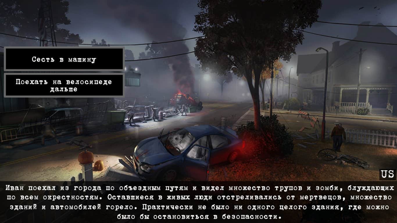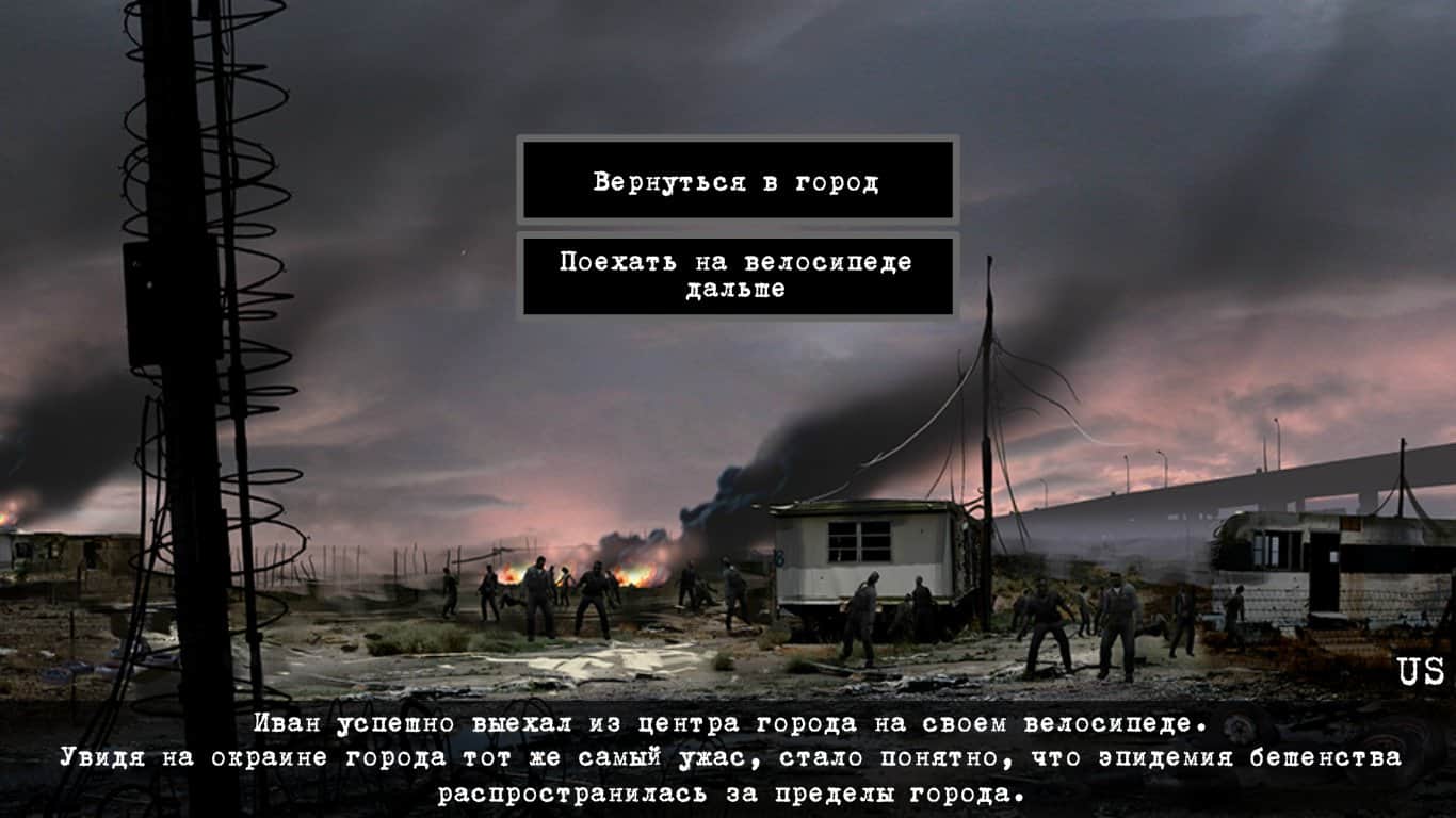 Escape from the terrible dead – увлекательная интерактивная игра в которой вы будете выживать в экстремальных условиях. В этой игре вы будете играть за парня по имени Иван, который проснулся в своей квартире от ужасных криков, доносившихся с улицы. Подойдя к окну, наш герой увидел, что вся улица заполонена зомби. Теперь вашей задачей будет выживать в опасных условиях, от вас будет зависеть дальнейшая судьба Ивана. В игре вам постоянно необходимо будет решать и выбирать правильное действие, которое должен будет сделать ваш герой. Завершите игру тремя различными видами счастливых концовок и не попадитесь в лапы ужасных зомби, которые будут подстерегать вас на каждом шагу.