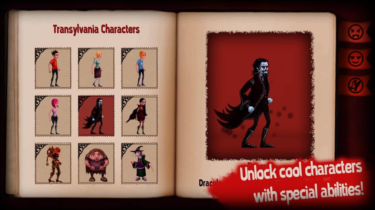 Escape from Transylvania - Увлекательное приключение, ждет вас в этой игре. Вы со своими друзьями, отправились в Трансильванию, и конечно же вы застряли. Ну а где ещё можно было застрять, как не возле замка графа Дракулы. Вы просите помощь у странного парня, но тот отказывается вас впускать, после чего вы все таки попадаете в замок, и отправляетесь на поиски самого Дракулы. В этой игре вам предстоит пройти множество разнообразных уровней, и снарядить себя самым разнообразным оружием, и другими крутыми предметами. На пути вам нужно уничтожать монстров, стоит заметить что их здесь много, и они самые разнообразные. А теперь вперед, на войну с вампирами.