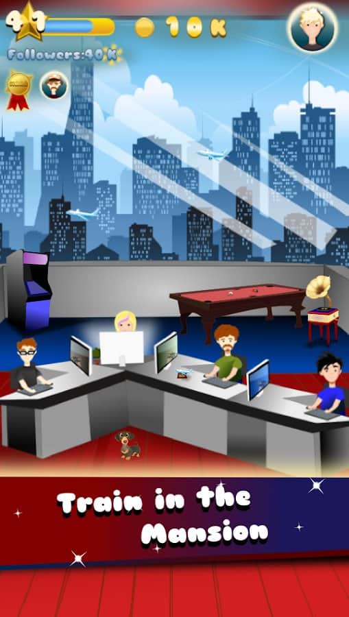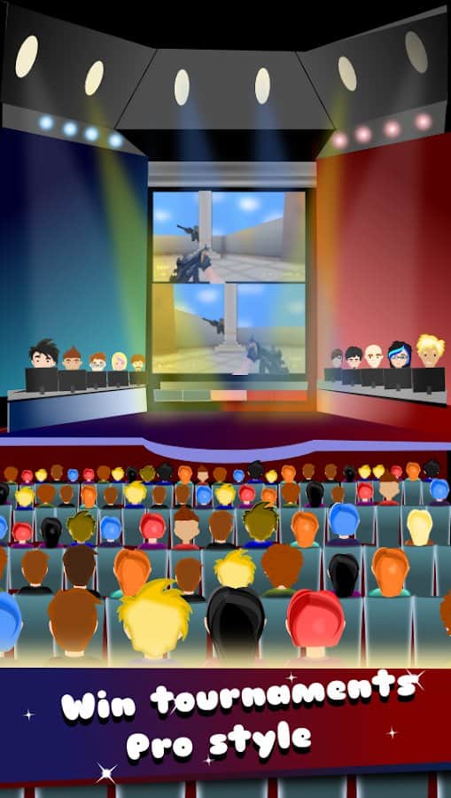 eSports Gamers Tycoon – занимательный симулятор профессионального геймера на андроид. В этой игре вы будете выступать в роли геймера который сражается с друзьями и другими игроками за звание профессионала в киберспорте. В игре вашей главной задачей будет касаться экрана своего телефона или планшета как можно чаще и проходить опасные миссии и задания игры. Получайте по три звезды в конце каждого уровня и открывайте для себя сундуки с бонусами и усилениями. Бросайте вызов игрокам со всего мира и соберите свою непобедимую команду, которая сможет одолеть самых сильных геймеров.