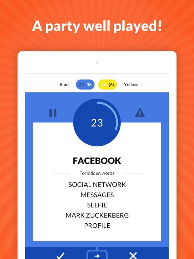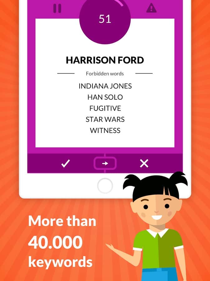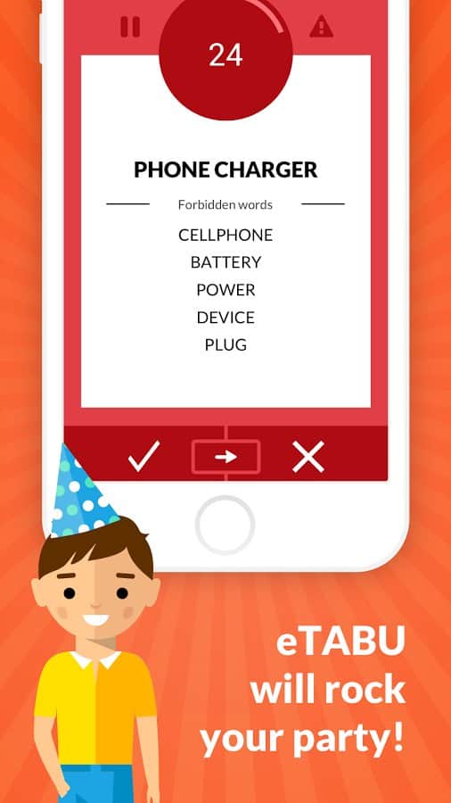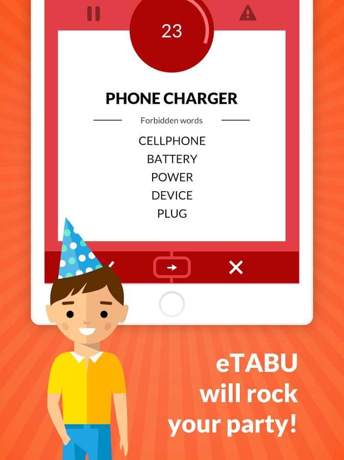 eTABU – отлична, веселая игра, в которой вам предстоит угадывать основные слова. В игре участвуют две команды, и вам необходимо чтобы ваша команда угадала что вы загадали, а вторая команда следит чтобы вы не пользовались запрещёнными словами и жестами – это категорически запрещено. Победителем оказывается та команда, которая набрала необходимое количество очков, раньше своего оппонента. Если вы изучаете иностранные языки, тогда игра ещё будет помогать вам осваивать новые термины и станет не только отличным развлечением но и помощником в изучения языка.