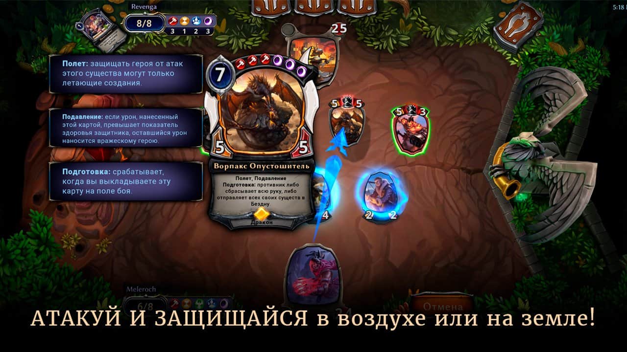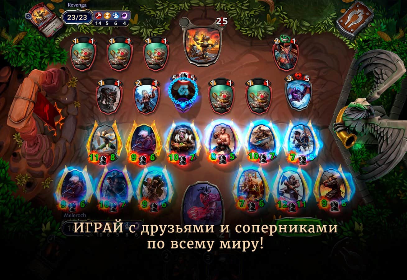 Eternal - красивая карточная игра, в которой единственное ограничение это ваша фантазия. В игре вас ждут бесконечные дуэли с реальными игроками со всего мира. Вам придется оттачивать свое мастерство в PvP и PvE боях, чтобы поднять на вверх мировой таблицы лидеров. Соберите свою собственную, непобедимую колоду из различных героев. А постоянное обновление карт не даст заскучать даже самому опытному игроку.