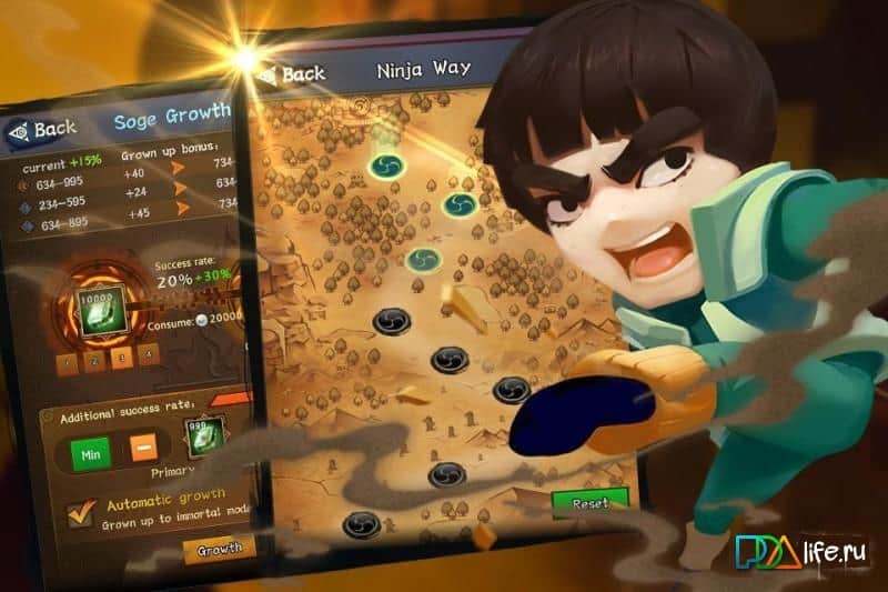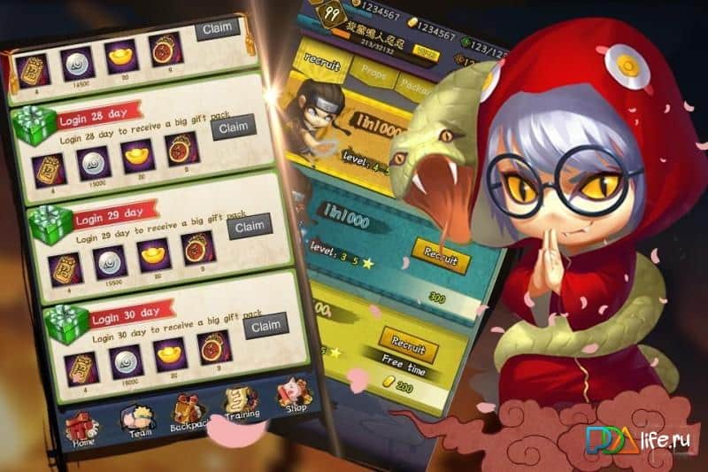 Eternal Legend – игра на андроид, где вам необходимо создать свой непобедимый отряд ниндзя. В этой игре вы попадете в древний мир, где всему живому грозить смерть от ужасных монстров и только вы способны дать отпор врагу. Соберите свой непобедимый отряд и бросьте вызов, всем врагам сражаясь с ними в неравных боях. Путешествуйте по всему миру и вступайте в эпические битвы, противостоя армии монстров. Соберите такой отряд, где каждый герой будет своими умениями и силой дополнять остальных, показывая на деле все свои способности и умения. Повышайте способности каждого из ваших ниндзя после битвы и изучайте новые приемы и навыки ведения боя.