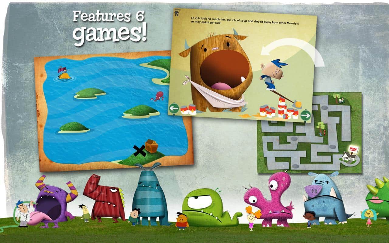 Even Monsters Get Sick – с момента появления мобильных устройств, многие известные сказки предстали перед читателями в совершенно новой интерактивной форме. Старые книги украсили картинками и интерактивными возможностями, которые невероятно изменили представления о книжках. Данное приложение так-же является интерактивной историей с возможностью влиять на ситуацию.