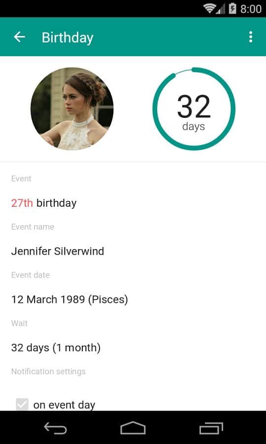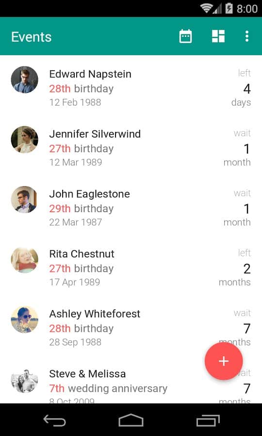 Events - Больше не нужно помнить дату каждого события, теперь всё стало проще, сохраняйте все важные для вас даты в одном приложении. Просто добавьте его, и приложение напомнит вам в нужный момент. Что бы вы и подарок успели купить, и слова поздравление заранее придумать. В нём нет ничего лишнего, оно сделано что бы просто выполнять свою главную функцию. И именно поэтому в нем нету надоедливой рекламы.