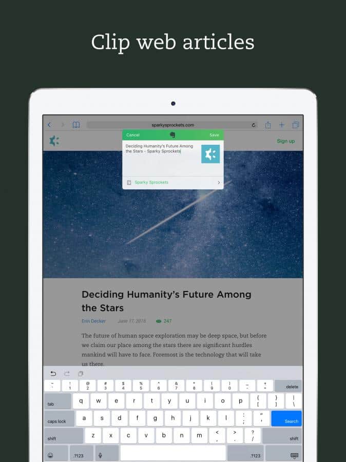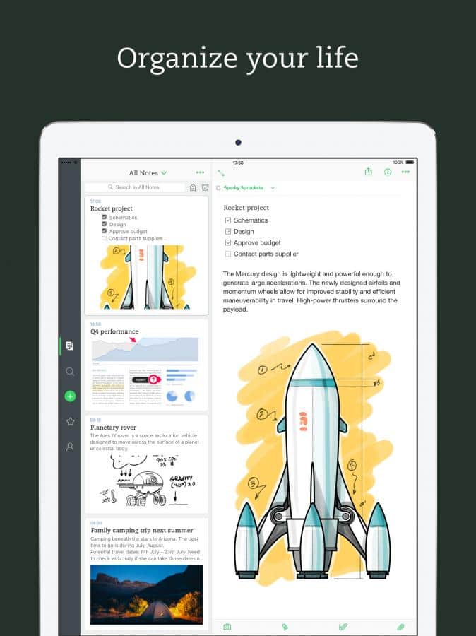Evernote - Великолепное приложение для заметок с возможностью синхронизации нескольких устройств. Данное приложение весьма универсальное, ведь обычно вы можете вести заметки только на одном устройстве, здесь же, вы сможете хранить их даже в облачном хранилище, и в нужный момент восстановить. Можете больше не боятся их потери, так же можете оставлять заметки с ваших apple watch, и использовать приложение на них, при этом не теряя даже части функций. Это приложение получило доверие у нескольких миллионов пользователей.