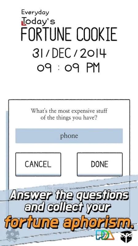 Не каждый день получается в печенье найти бумажку с текстом, но теперь это станет ежедневной традицией. Создатели игры Everyday Today's FortuneCookie предлагают ежедневно разламывать печеньку и читать, что написано на бумаге внутри. Часто это удивительные утверждения, а иногда смешные задания. Собирай афоризмы и проверяй свою удачу ежедневно, получая соответствующие уведомления и вознаграждения вместе с актуальными вопросами, способными пригодиться на практике. Делай свою жизнь особенной каждый день!