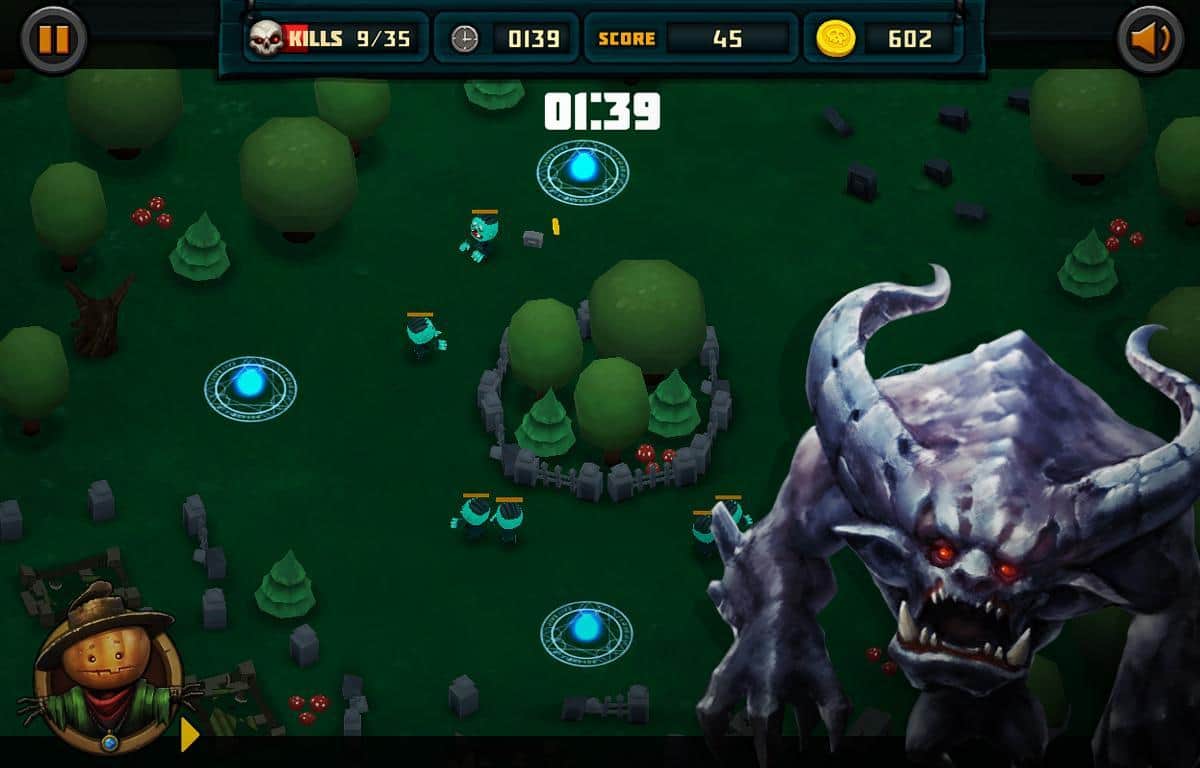 Evil Slayer – благодаря приближающемуся Хэллоуину все монстры, зомби и остальная нечисть повылазили из своих укрытий и пытаются украсть тыквы. Вашей задачей будет помочь пугалу Скери уничтожить всех врагов и не дать им залезть на ваш огород. С помощью прикосновений к экрану бейте хлыстом по врагам уничтожайте всю нечисть, которые имеют отличительные особенности: призраки могут исчезать на время, зомби очень медленные, а демоны быстро передвигаются, но из-за маленького роста не могут быстро утащить тыкву с огорода. Для борьбы с врагами в вашем арсенале есть различные бонусы: бомбы, ловушки, мины и заморозка применяйте их в сложных ситуациях. Проходите разнообразные миссии и получайте достижения, которые вы сможете потратить на покупку бонусов.